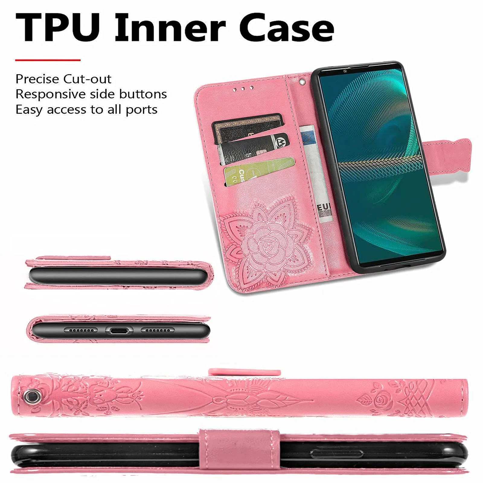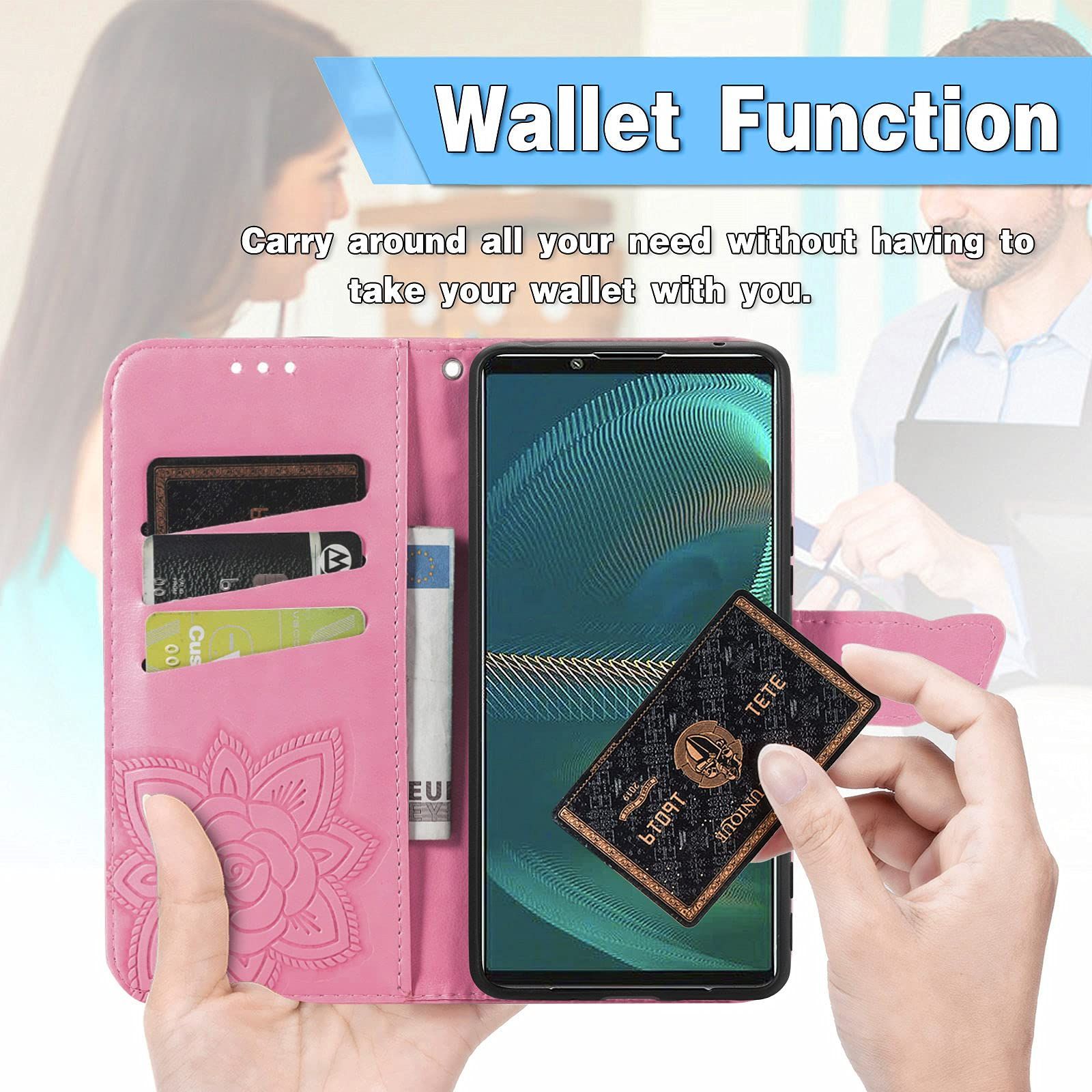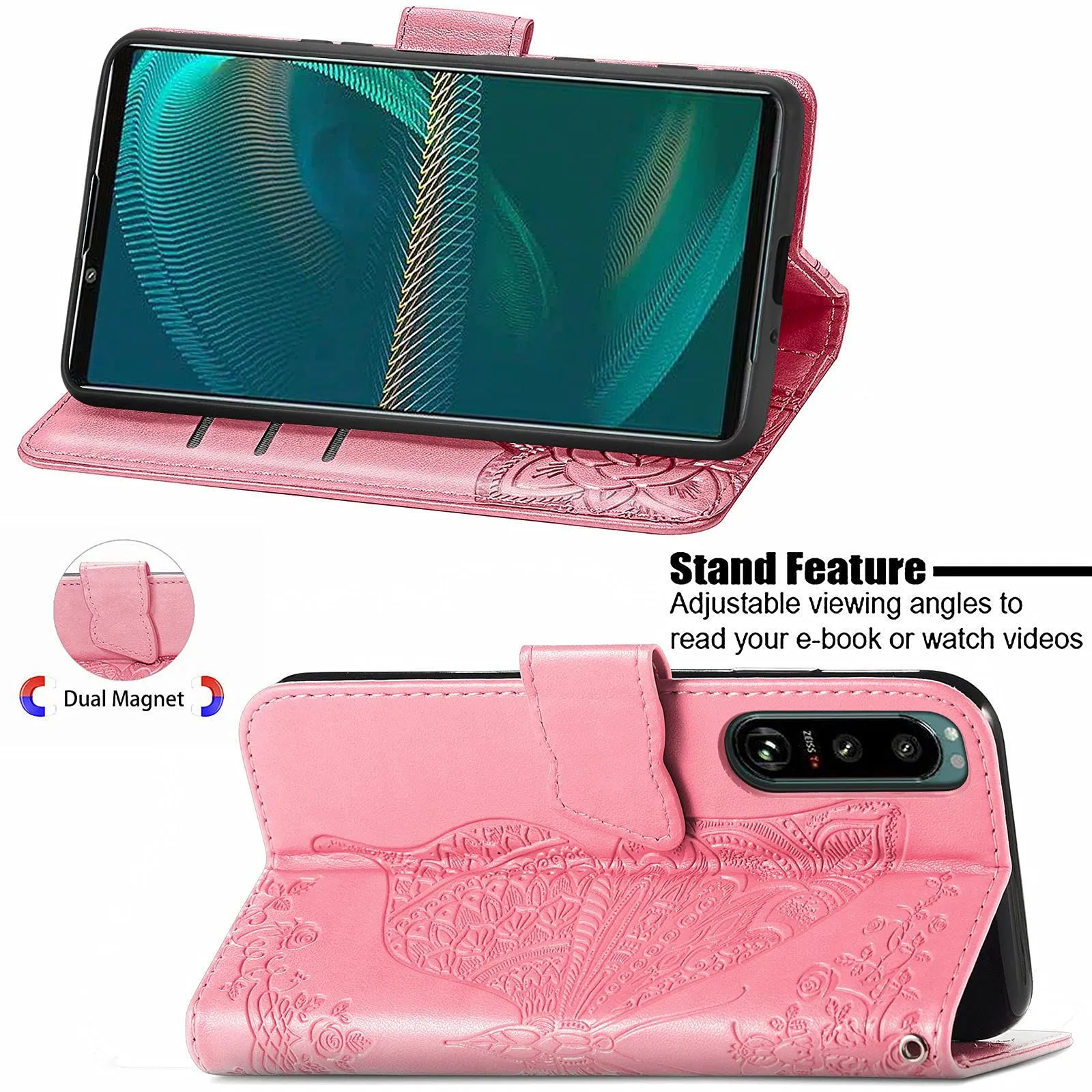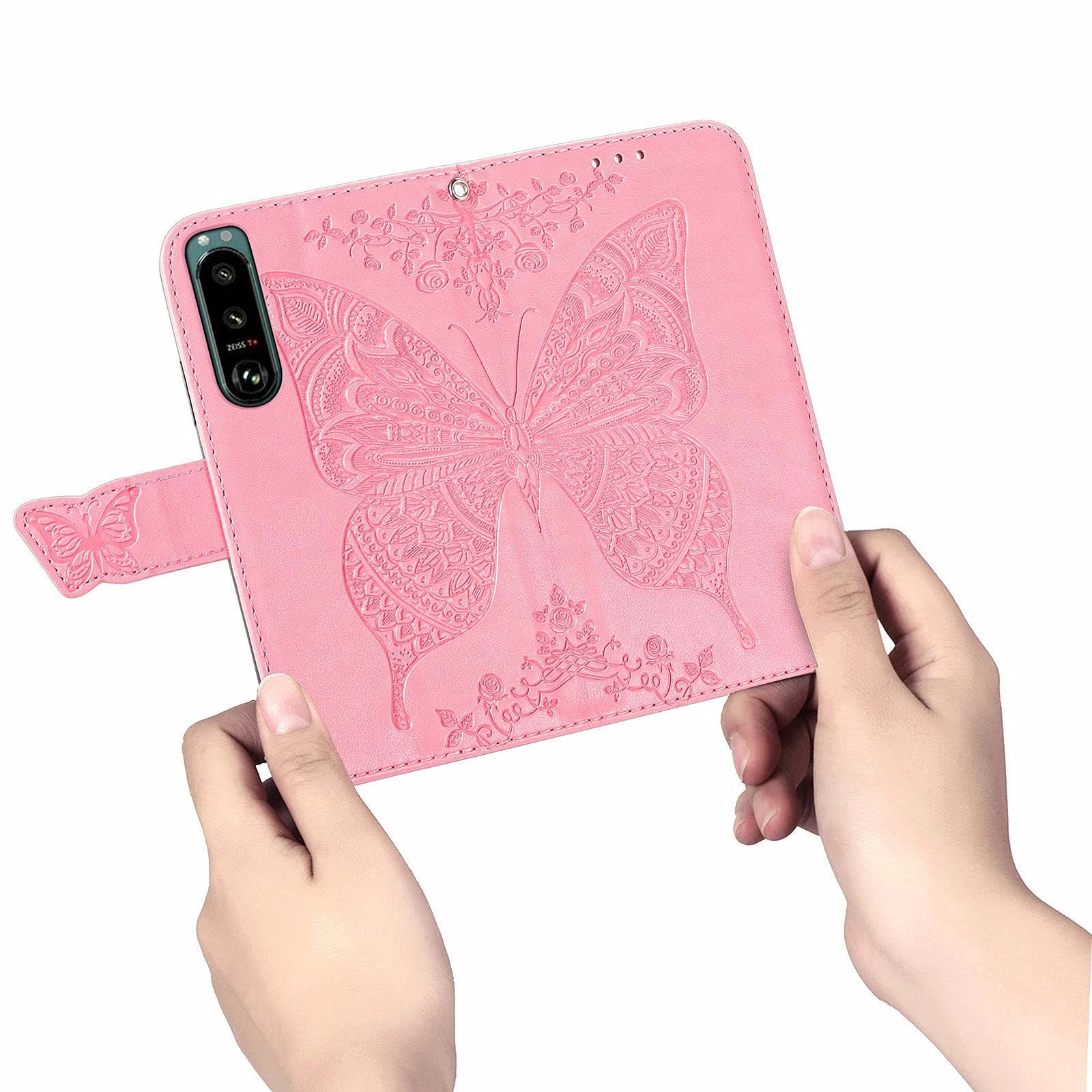 【フォロー頂いた方限定!】※不定期 大変お得な クーポン を発券しております! フォロー頂けないと確認できないので お手数ではございますがページ下プロフィールより ボタンひとつ 「ポチッ」 だけおねがい致します|ω・) ------------- に適用するXperia 5 III SO-53B SOG05 エクスペリア 5 III ケース 手帳型 ノートブック型携帯電話保護カバー多機能携帯電話ホルスター財布携帯電話ホルダーバンプパターンテクスチャ耐久性摩擦耐性携帯電話ケース男性と女性に適した多色オプション (バタフライピンク) サイズ:に適用するXperia 5 III SO-53B SOG05