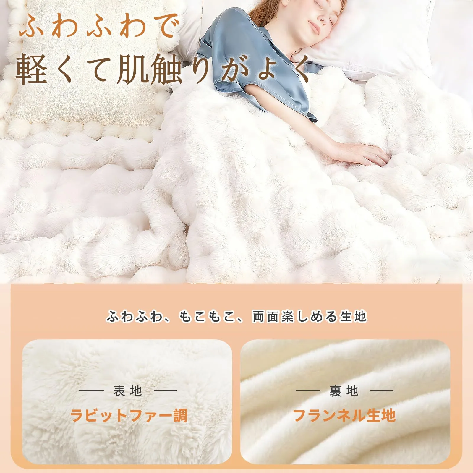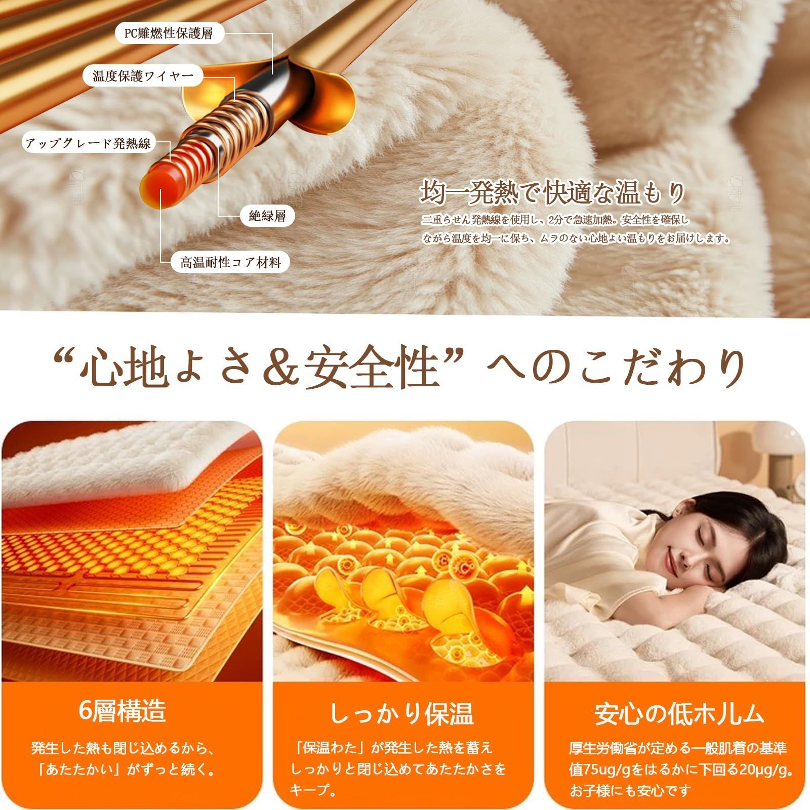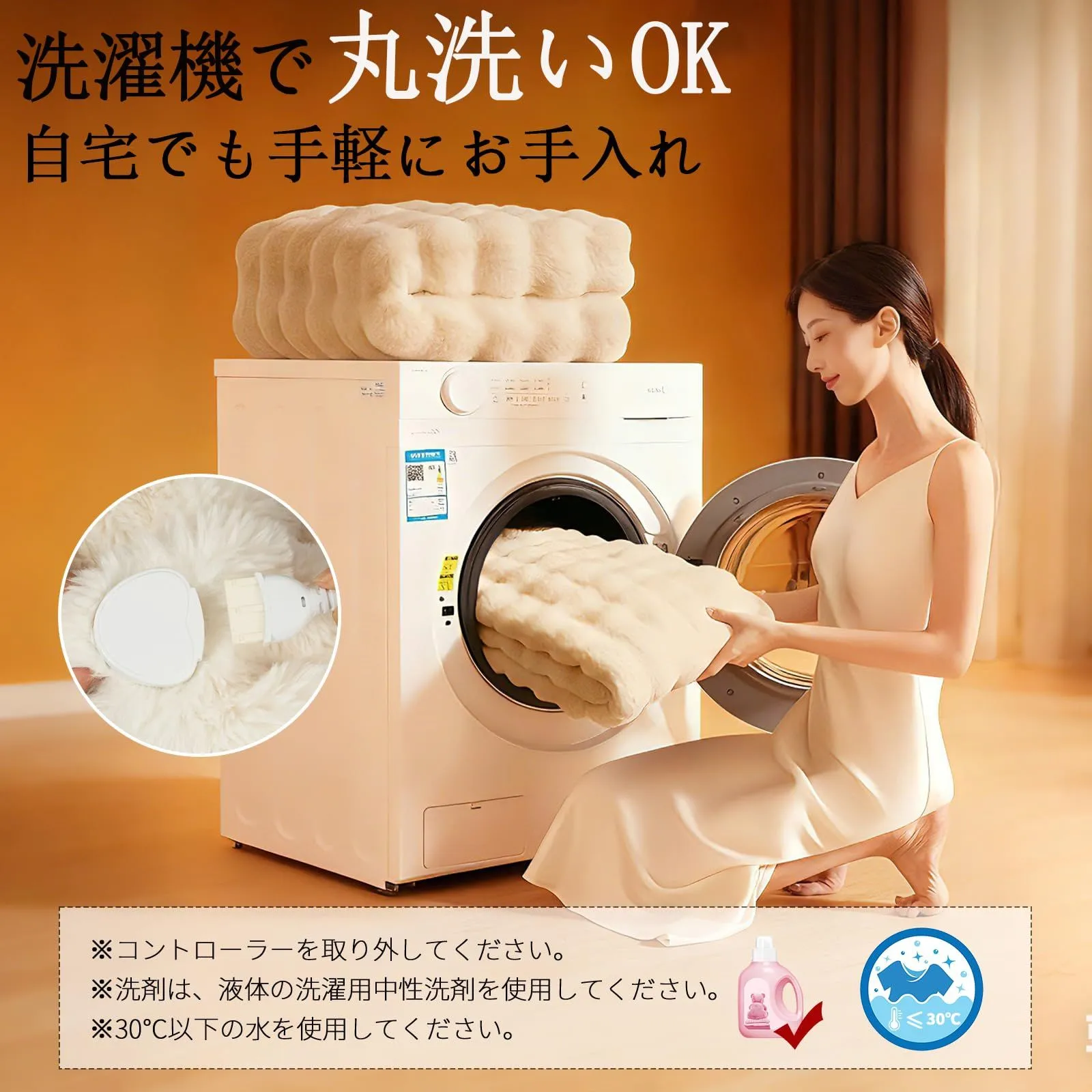 【ダブルウォーム&外層ラビットファー・内層フランネル 】外側には高級ラビットファー素材を採用し、天然ファーのようになめらかで上質な肌触りを実現。ふんわりとした柔らかさと贅沢な質感が心地よく、長時間素肌に触れてもチクチクせず快適にお使いいただけます。内側には高密度フランネル生地を使用し、繊維が緻密で厚みがあるため熱をしっかりと閉じ込めて均一に伝え、持続的で安定した暖かさを提供します。さらに吸湿性と通気性にも優れており、蒸れや不快感を軽減して一晩中さらっと快適。外層は見た目と触感で高級感を演出し、内層は機能性と実用性で長時間の保温を実現することで、この電気毛布は単なる暖房器具にとどまらず、冬の暮らしを格上げする上質なライフスタイルアイテムとなります。