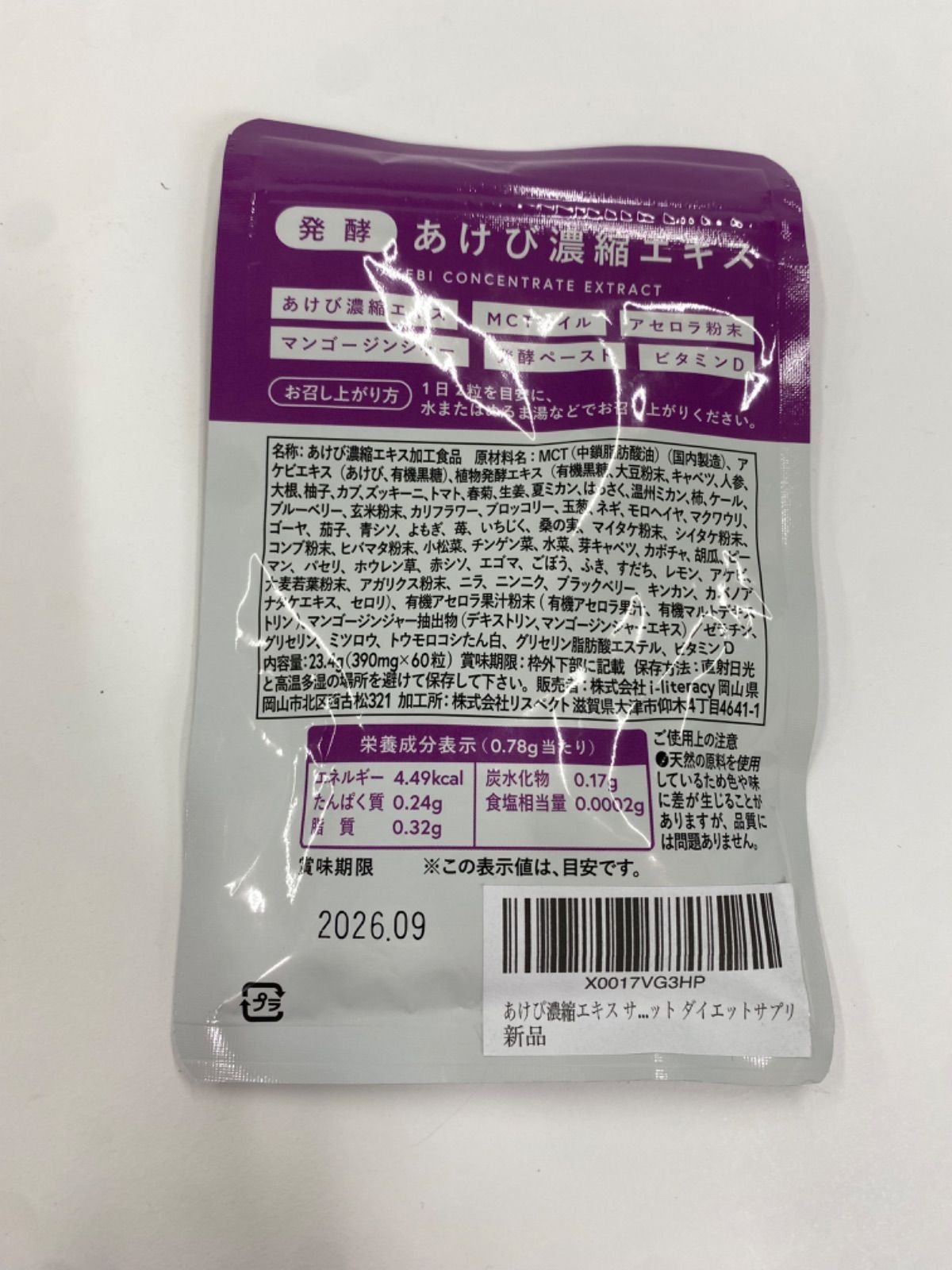 A8604 K リスペクト 発酵 あけび濃縮エキス60粒 2609