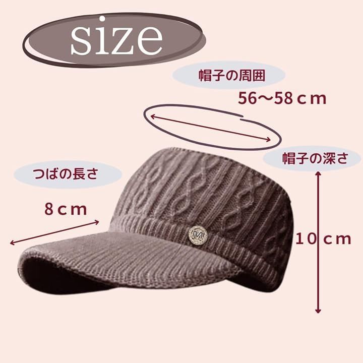 「商品サイズとカラーバリエーション」 頭囲56~58cmに対応しており、つばの長さは約8cm、帽子の深さは約10cmです。