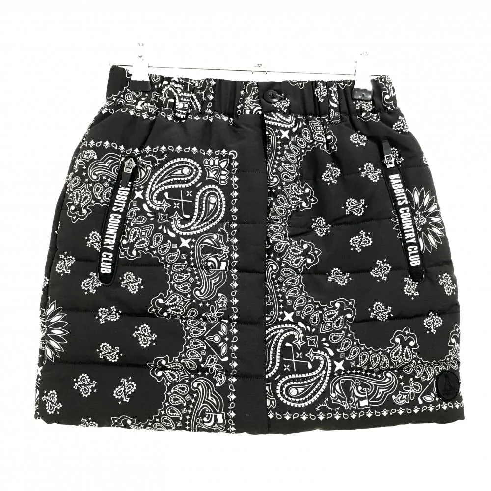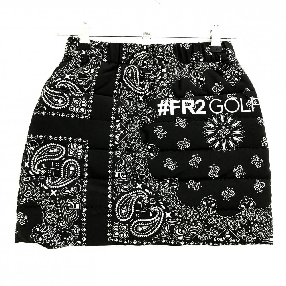 【新品】エフアールツー 中綿スカート 黒×白 総柄 ペイズリー ウエストゴム&調節紐 レディース S ゴルフウェア #FR2 GOLF