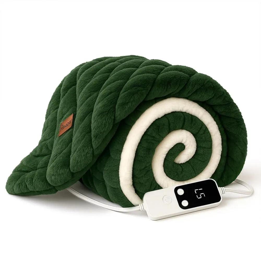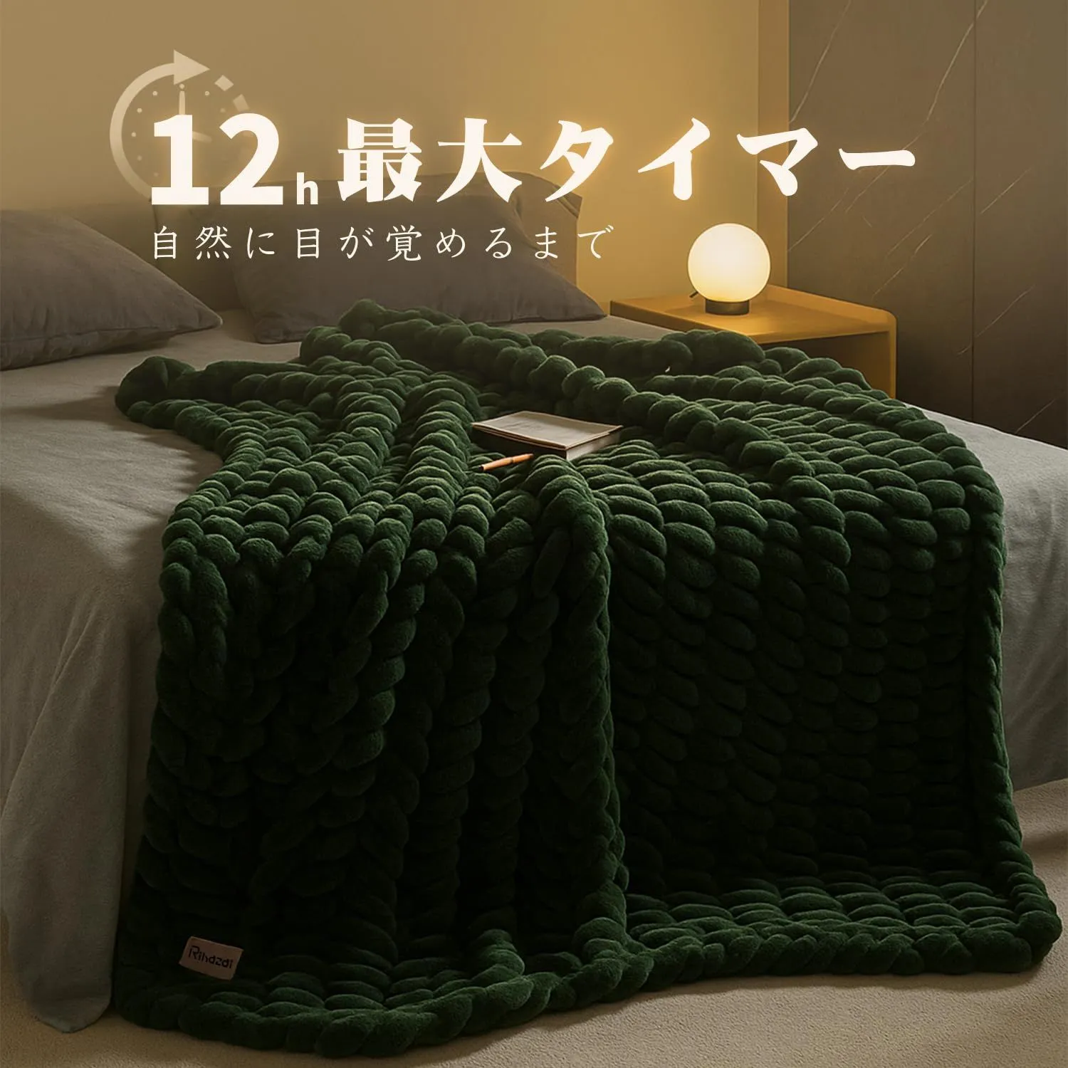 【冬】Rihazai 電気毛布 ひざ掛け 電気ブランケット 超滑らか触感 厚手保温 5段温度調節 切タイマー 省エネ 丸洗い可能(洗濯機/手洗い対応) ポリエステル ふわふわ 170*130cm ダニ退治 DRMTYGG001 (ダークグリーン)