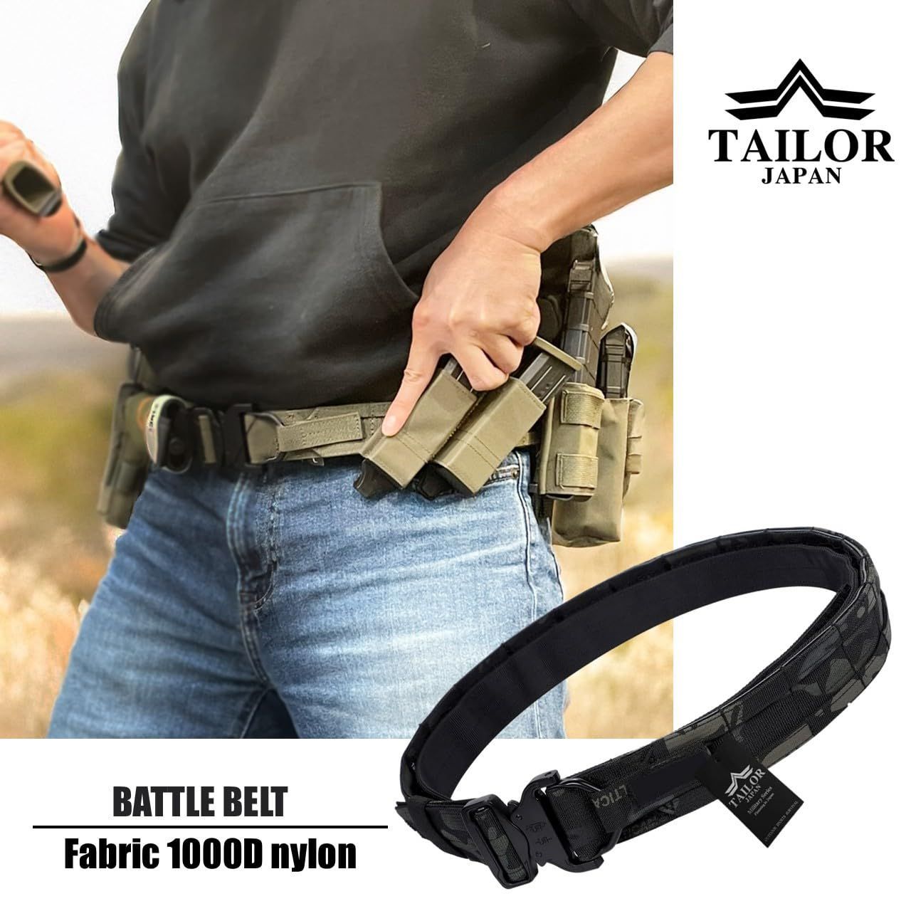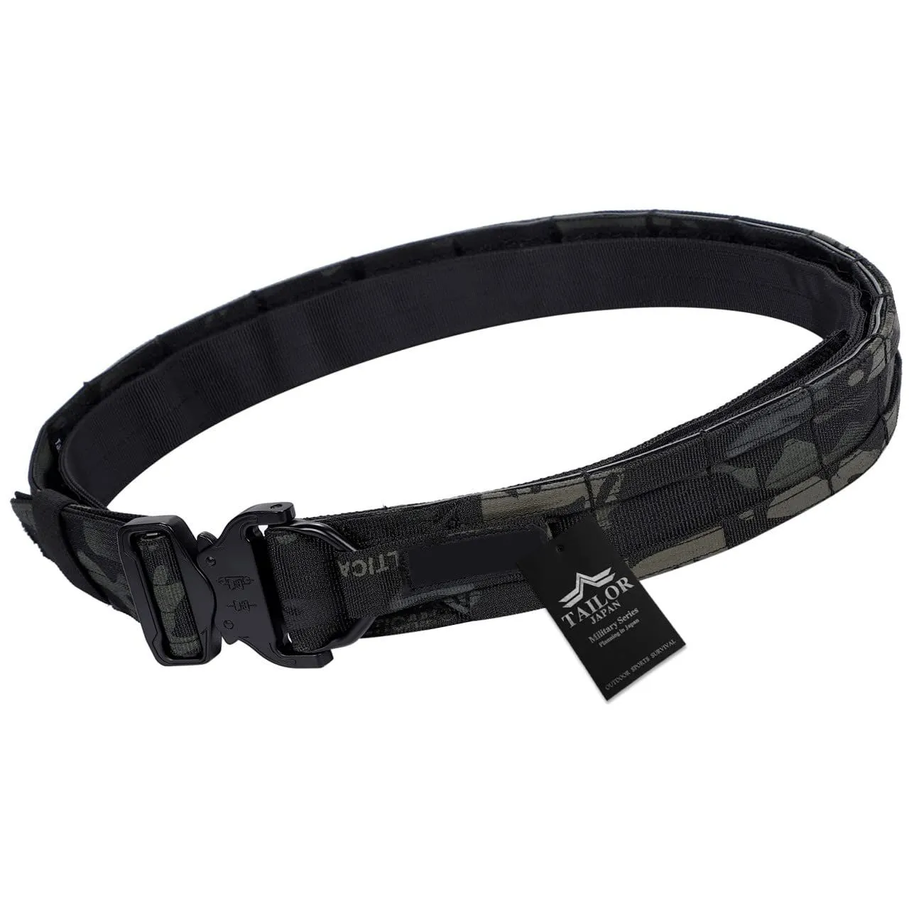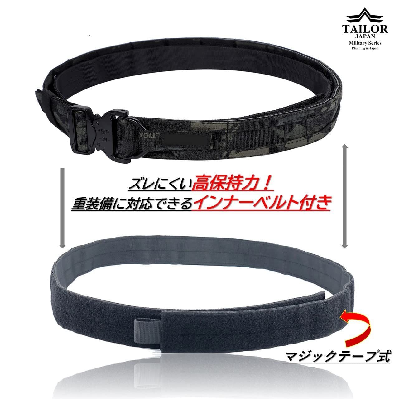 [TAILOR JAPAN] デューティーベルト サバゲーベルト タクティカルベルト インナーベルト付き ガンベルト モールベルト コブラバックル 実物素材 (ブラックマルチカム, M)