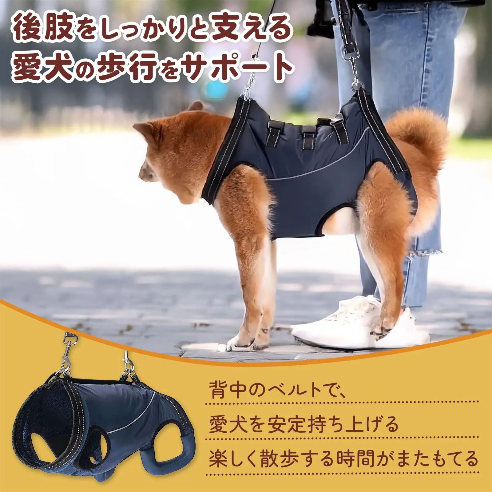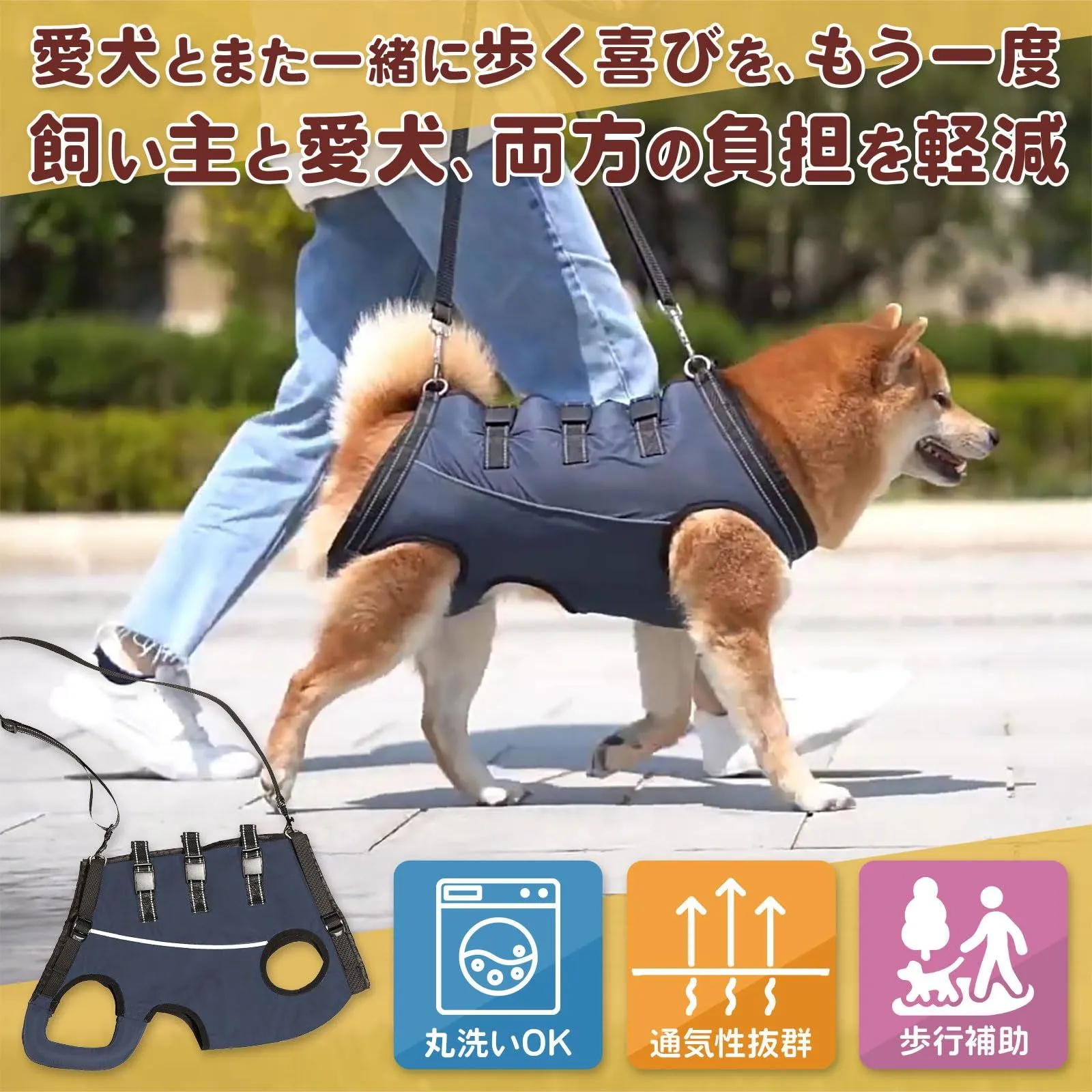 【愛犬と歩く喜び、再び】 階段を怖がる愛犬の姿に、胸が痛む日々。でも諦めないでください。3点でやさしく支えるこのハーネスがあれば、もう一度一緒に歩く幸せを取り戻せます。12kgの中型犬も軽々サポート。愛犬が嬉しそうに歩く姿を、もう一度。 ?