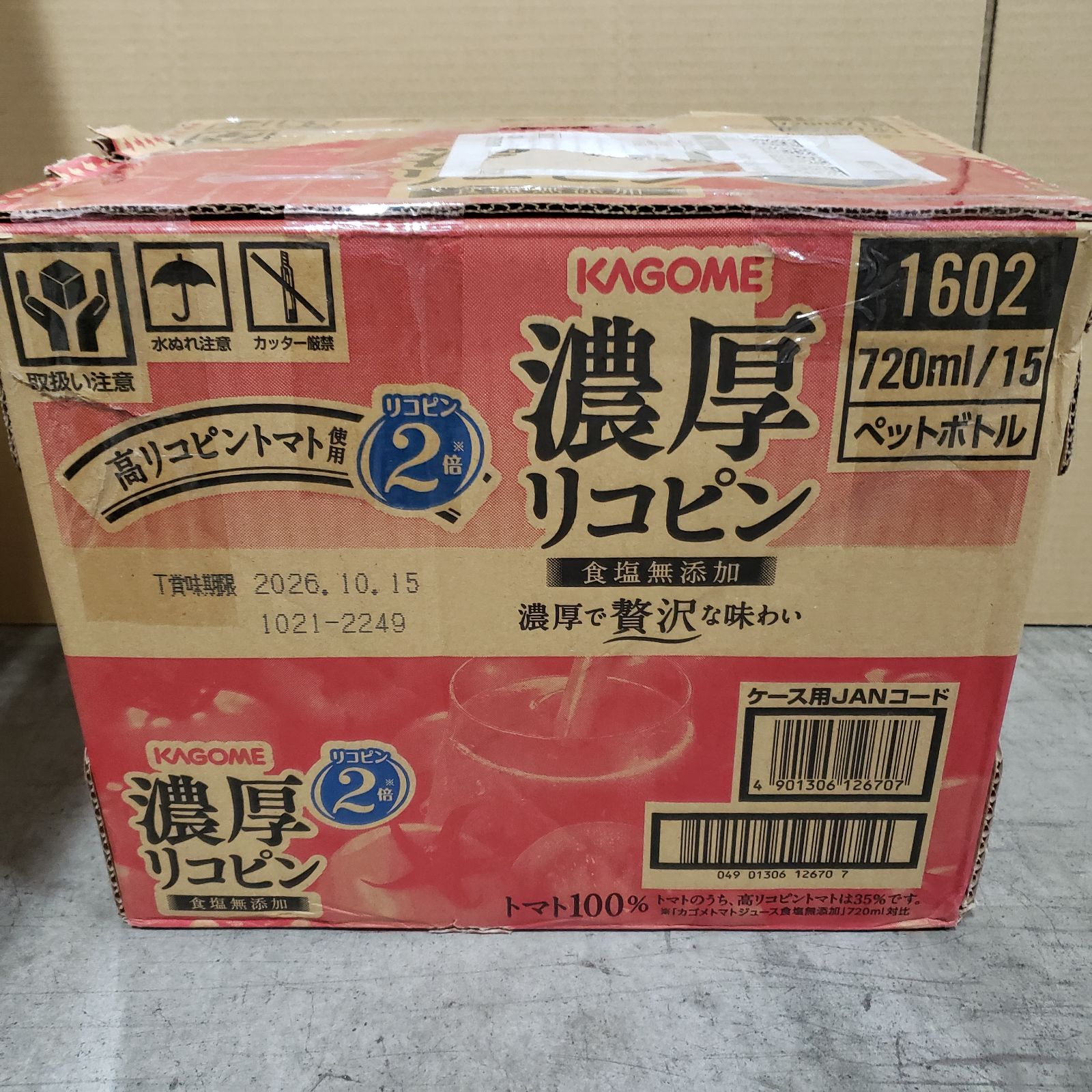 新品未開封 カゴメ 濃厚リコピン 720ml ペットボトル 15本入 トマトジュース