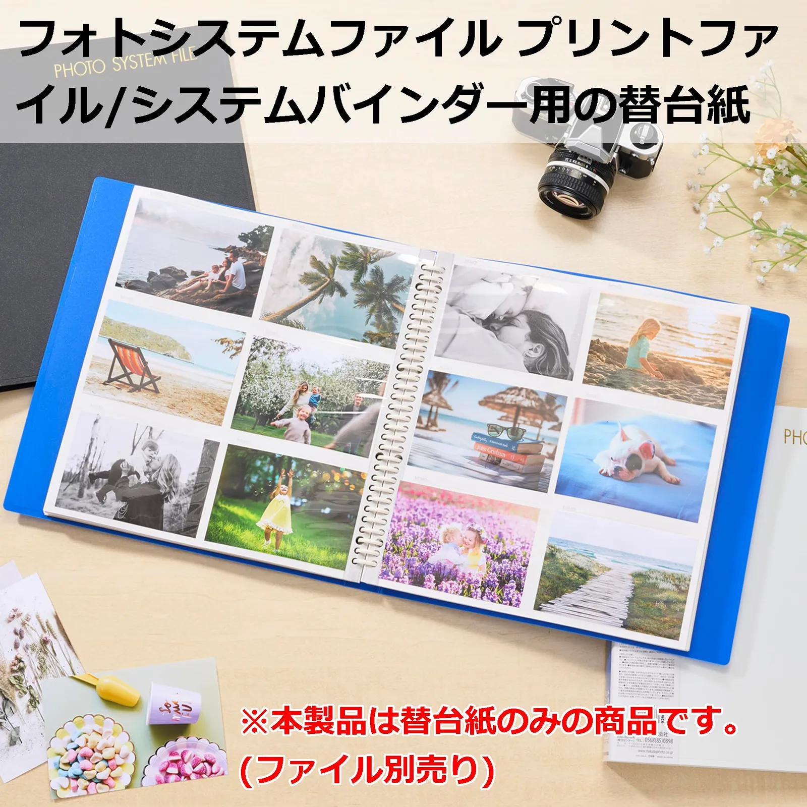 別売りのプリントファイル/システムバインダーに追加することで使用ができます。増えていく思い出の写真をまとめたいときに便利です。