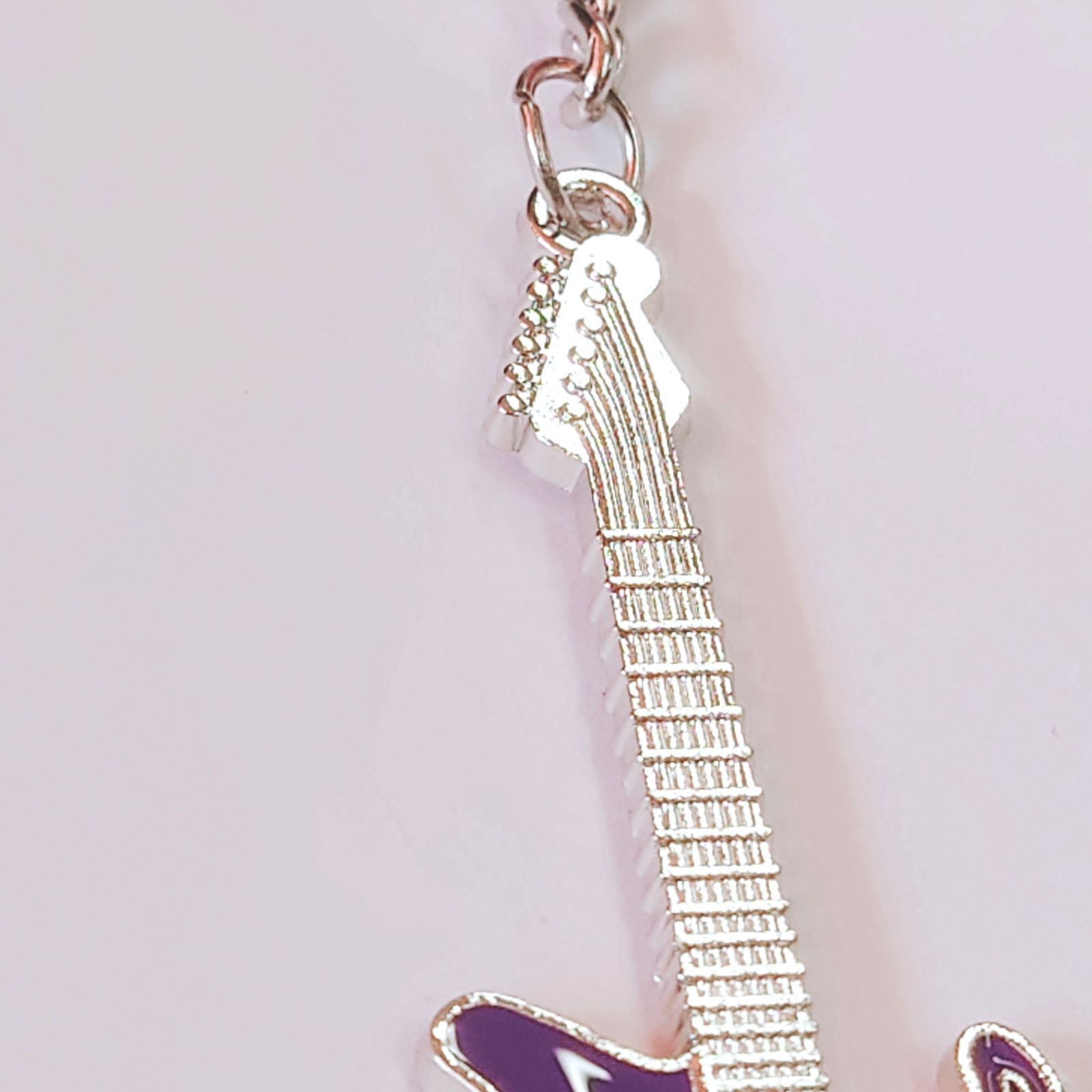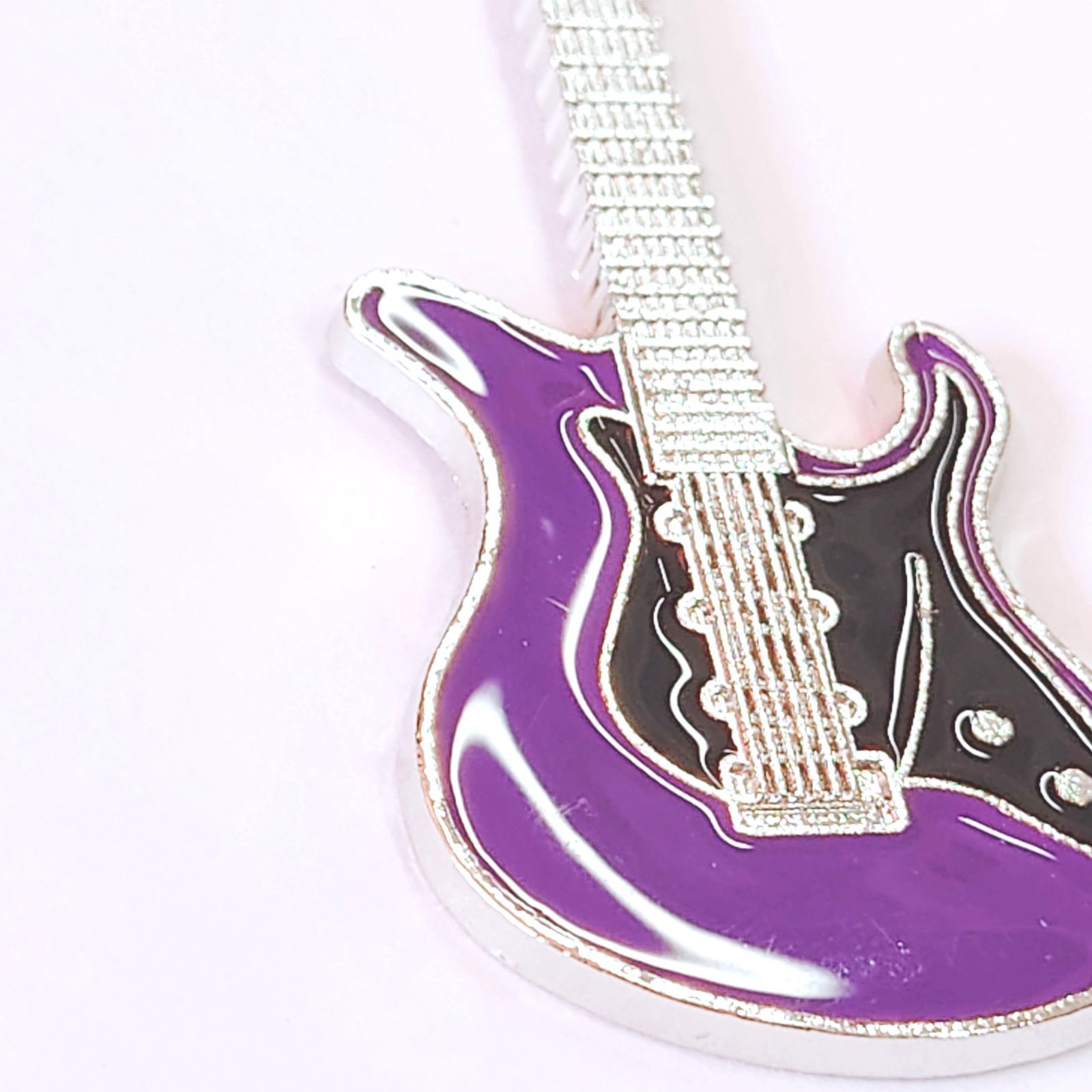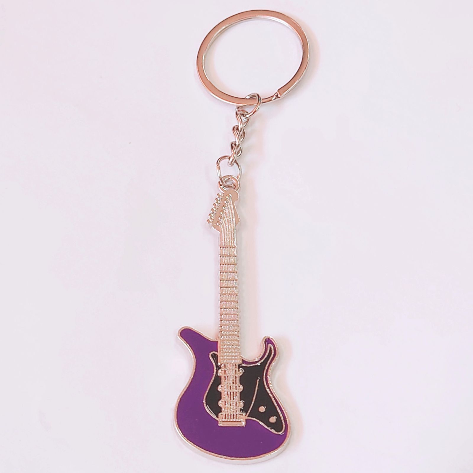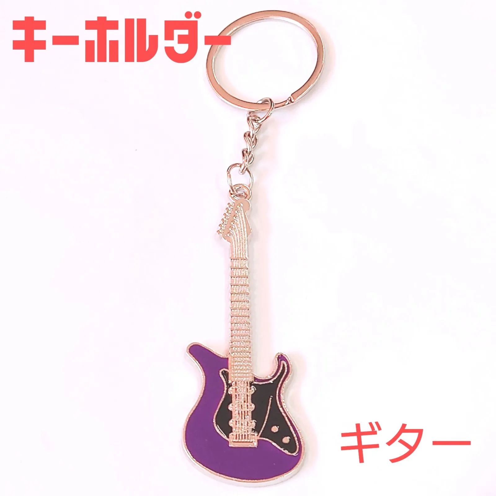 ギターモチーフ 金属製 エナメル キーホルダー キーリング パープル 紫