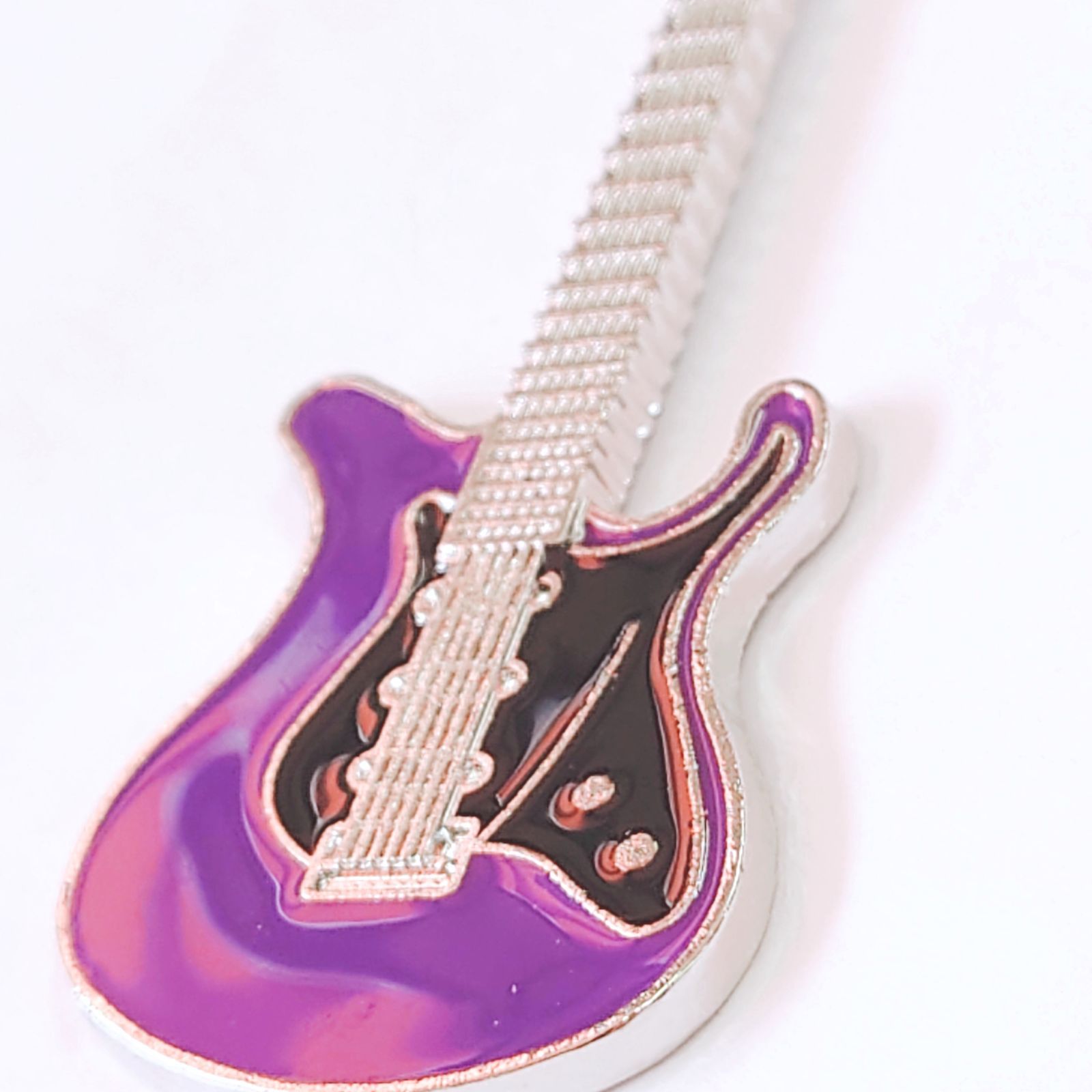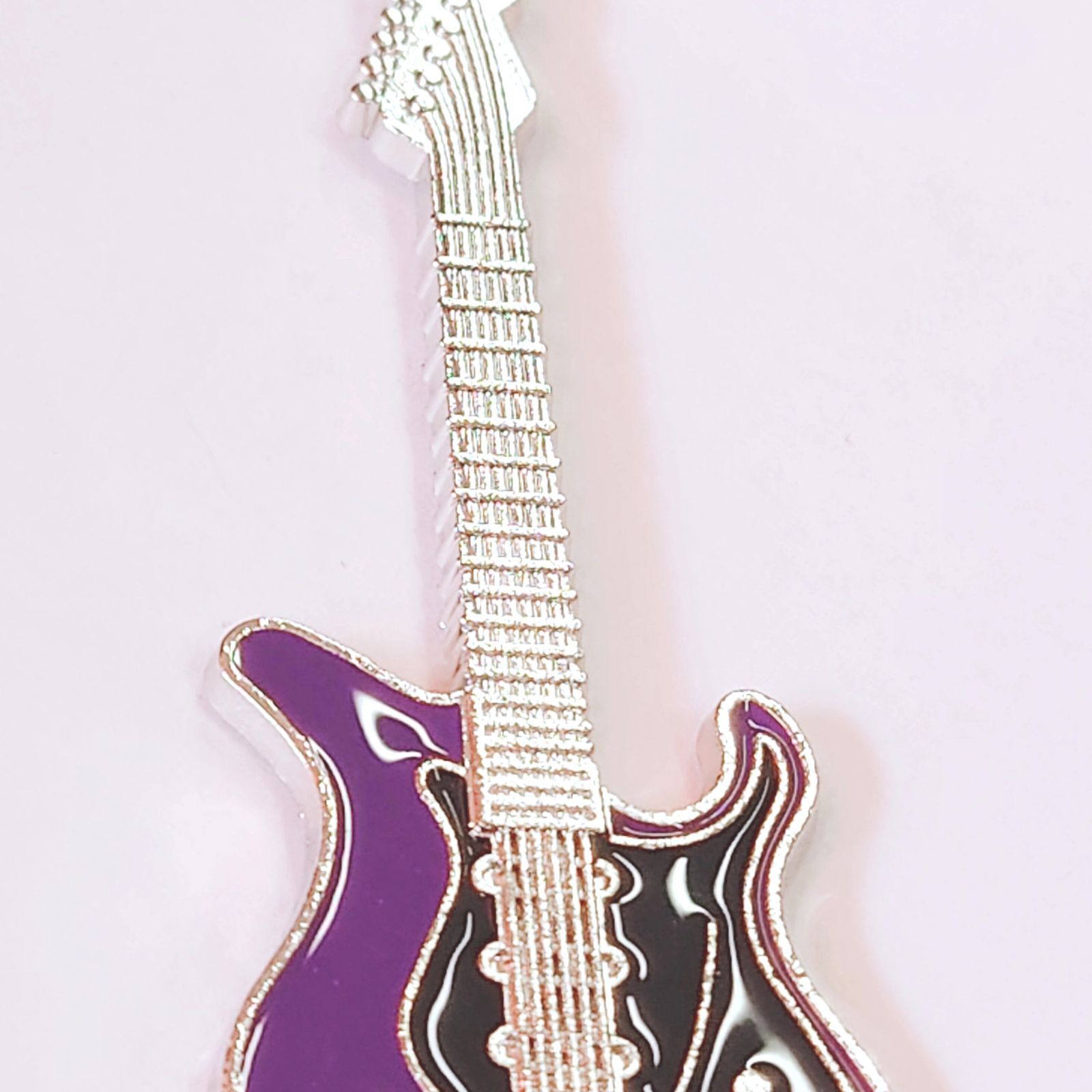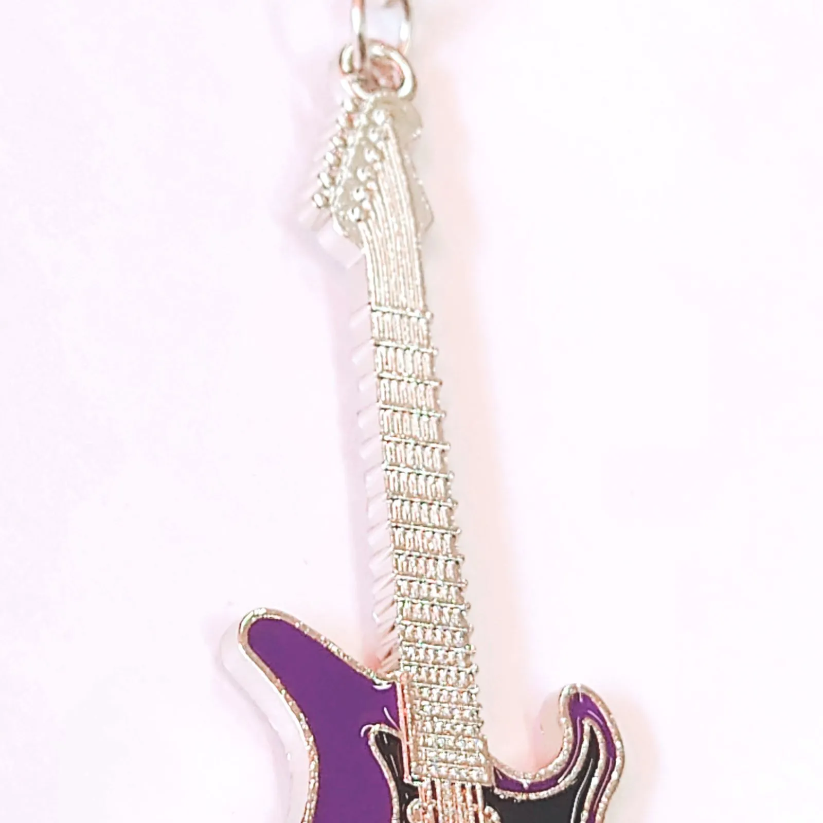 ギターモチーフ 金属製 エナメル キーホルダー キーリング パープル 紫