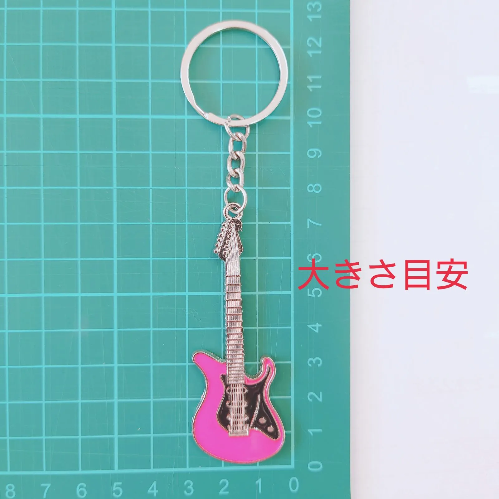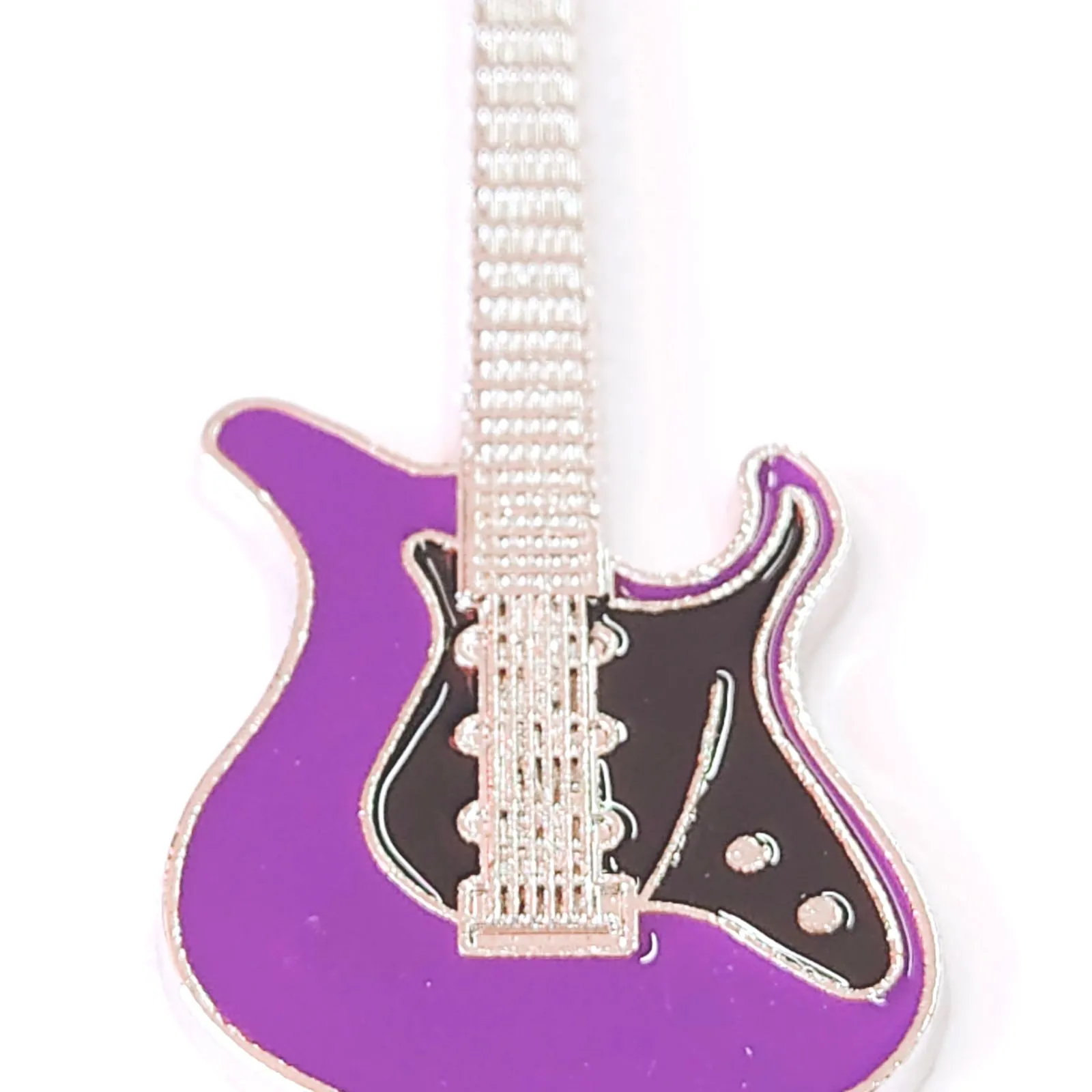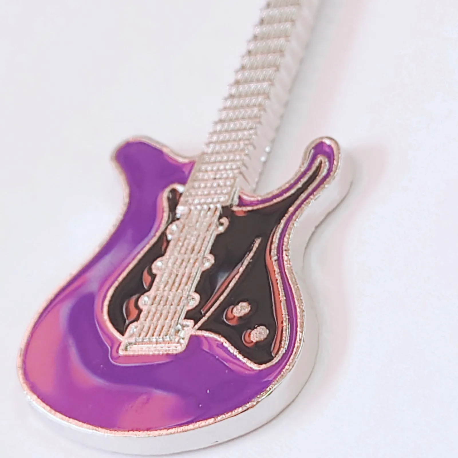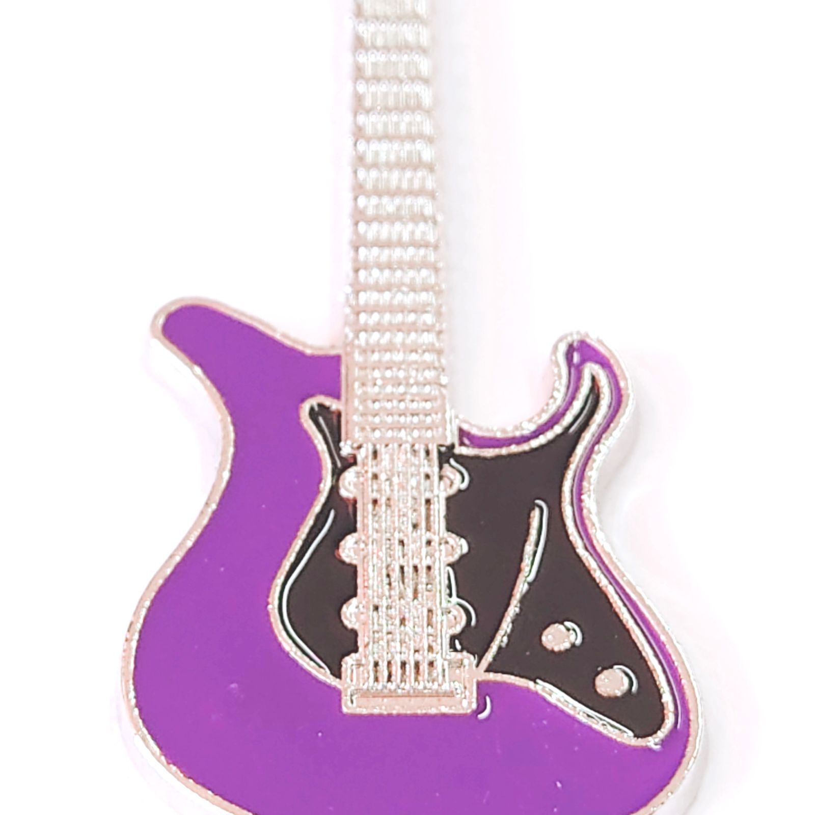 ギターモチーフ 金属製 エナメル キーホルダー キーリング パープル 紫