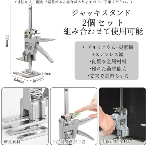 高品質素材:高品質金属素材(アルミニウム炭素鋼ステンレス鋼)、堅牢で変形しにくい。4 MMはベースを厚くし、より強い重量上昇能力を持ち、丈夫で耐久性がある。単体の最大耐荷重は200 KGで、普通の家具を簡単に持ち上げることができ、安定性が高く、実用的で信頼性が高い。