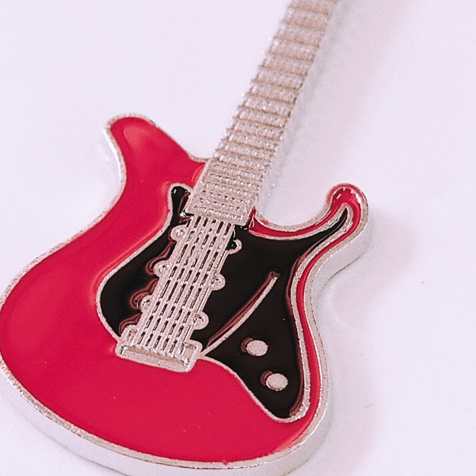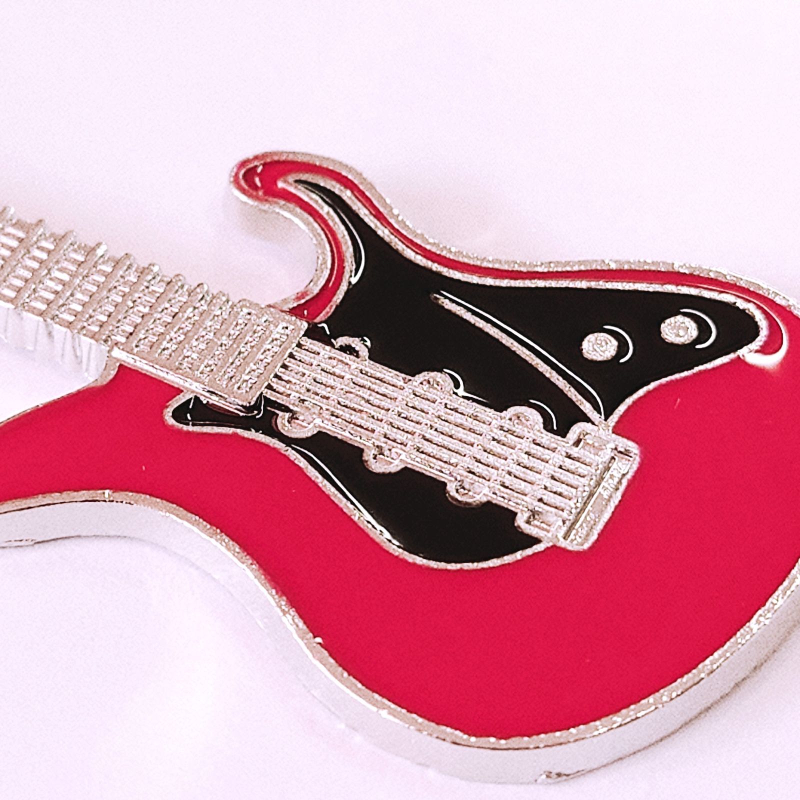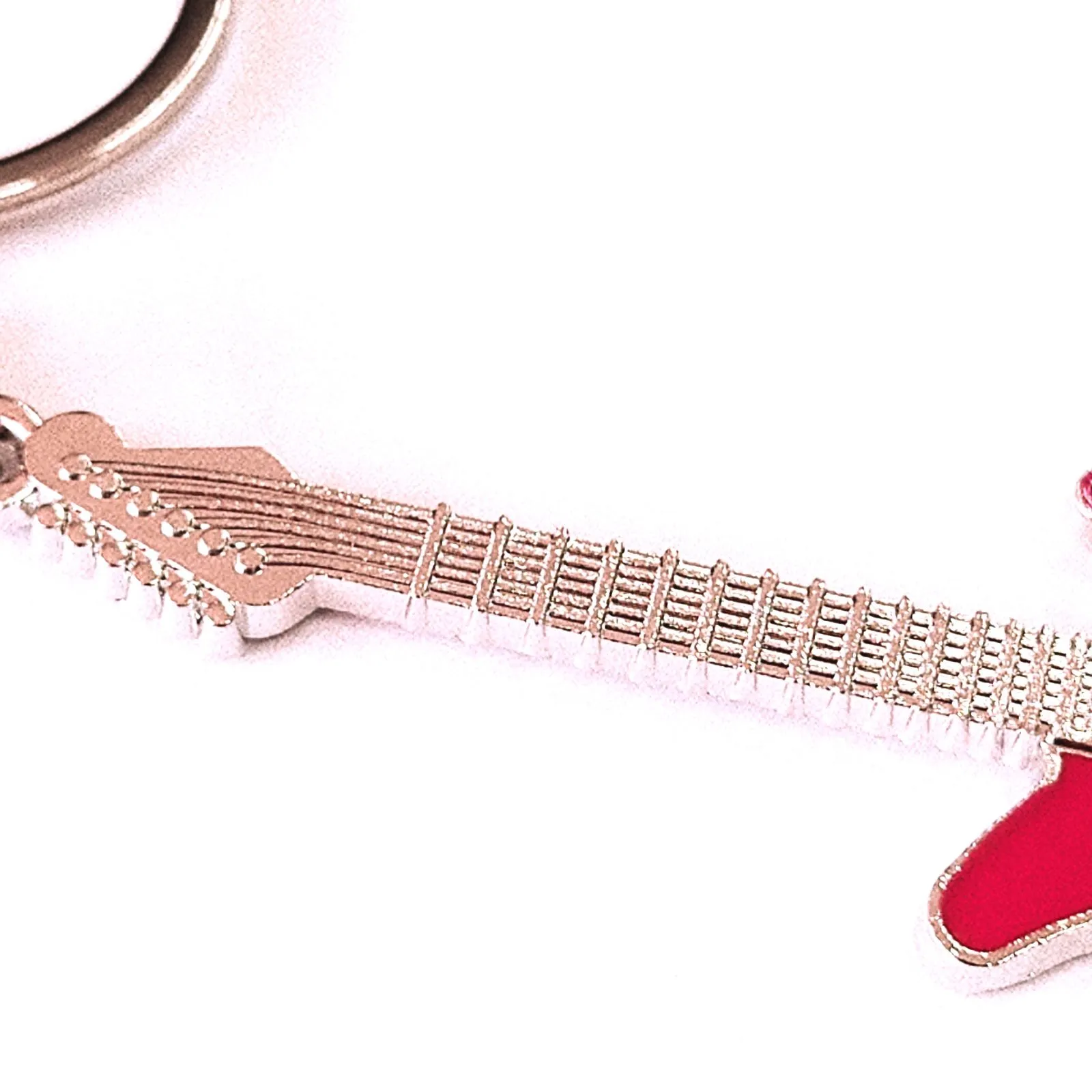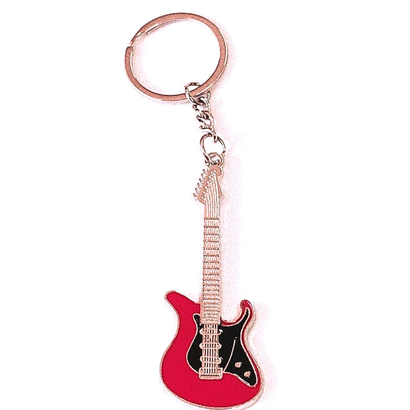 ギターモチーフ 金属製 エナメル キーホルダー キーリング 赤 レッド