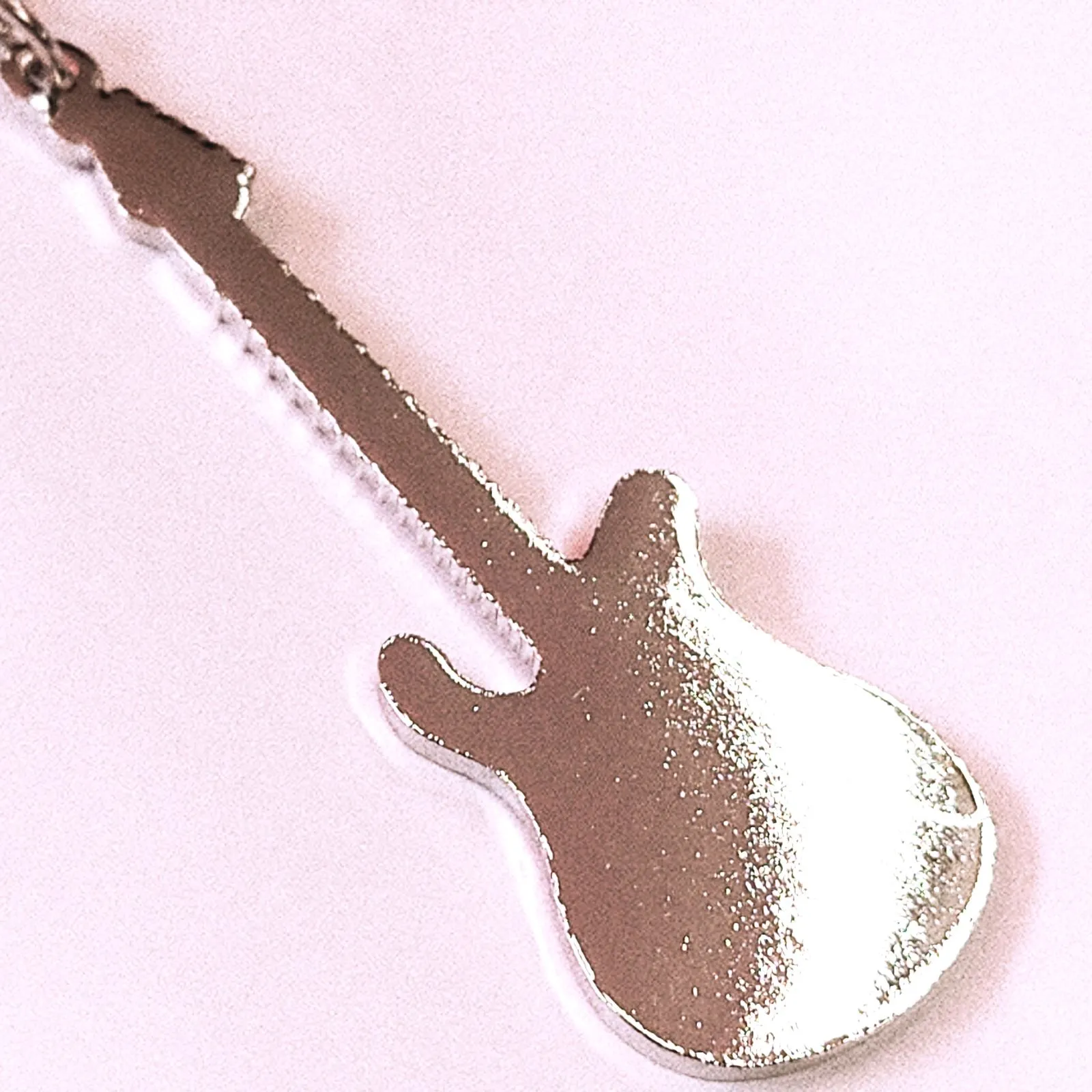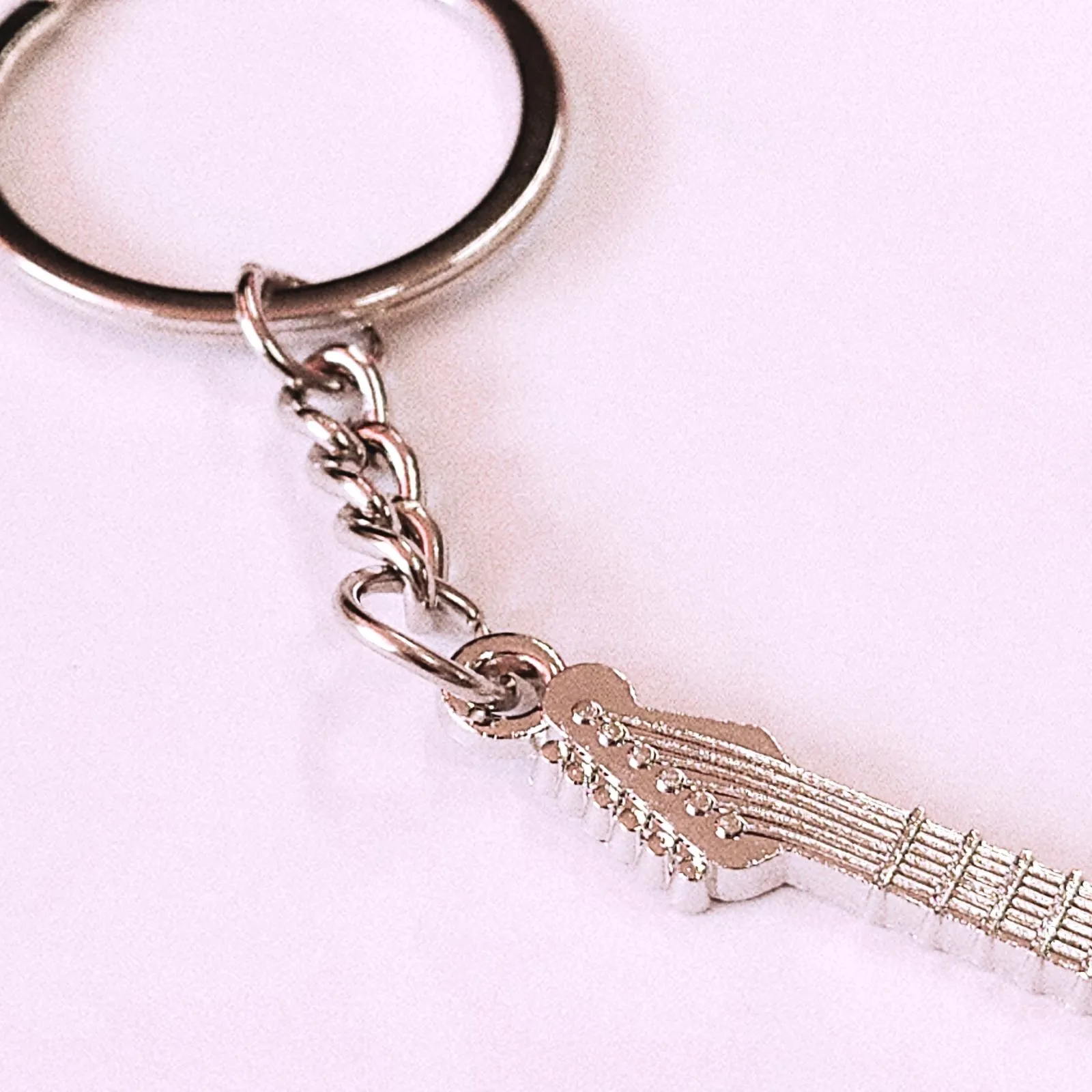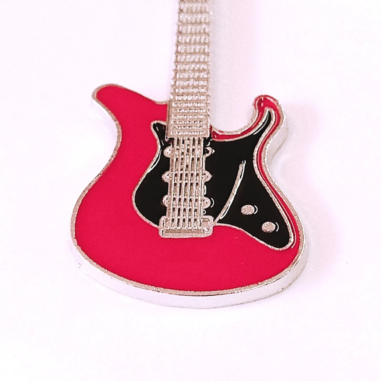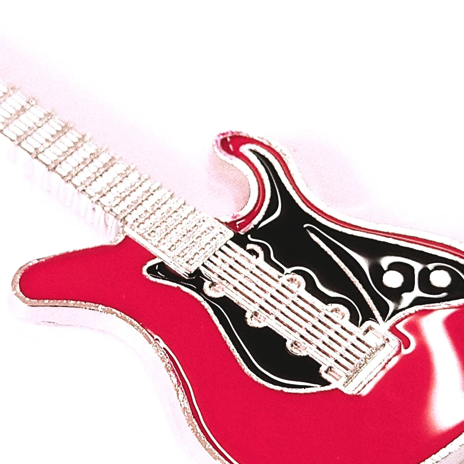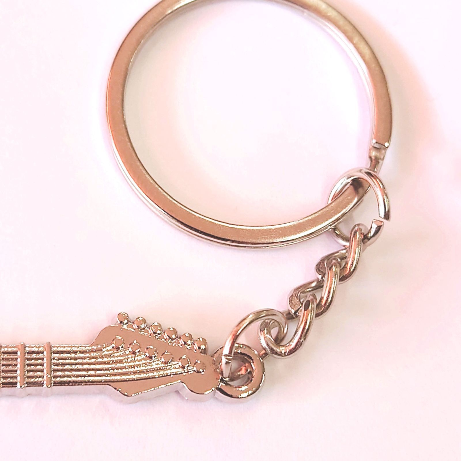 ギターモチーフ 金属製 エナメル キーホルダー キーリング 赤 レッド