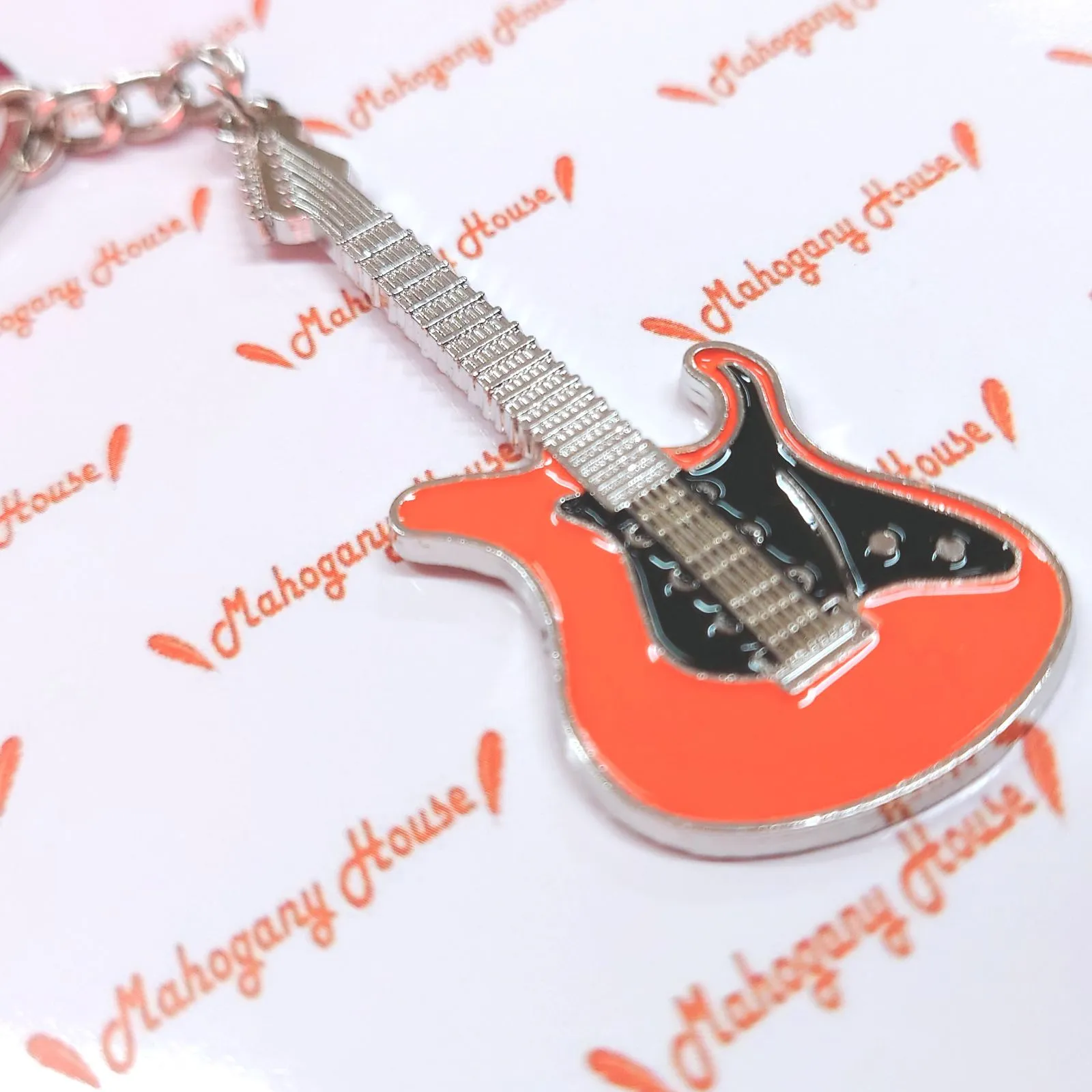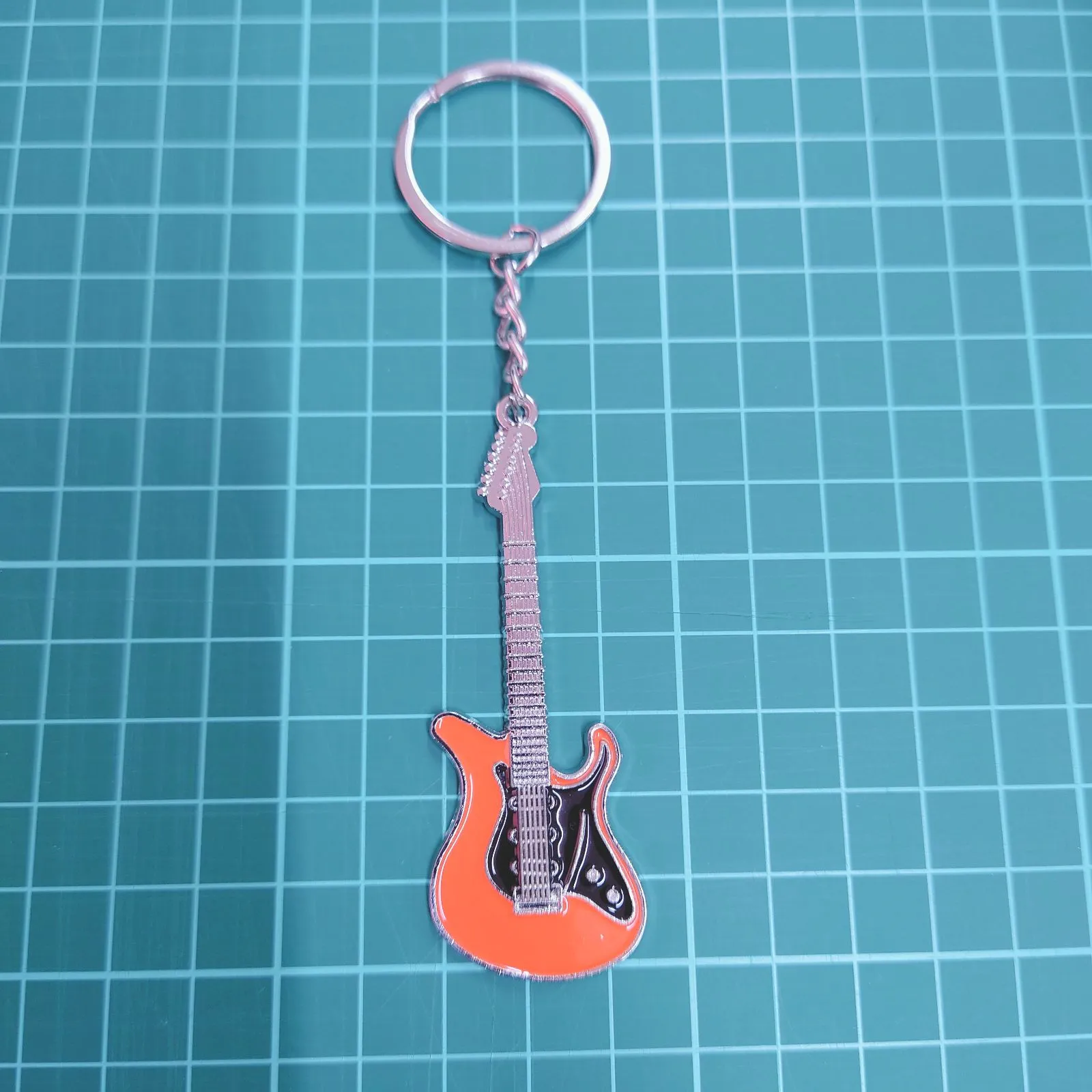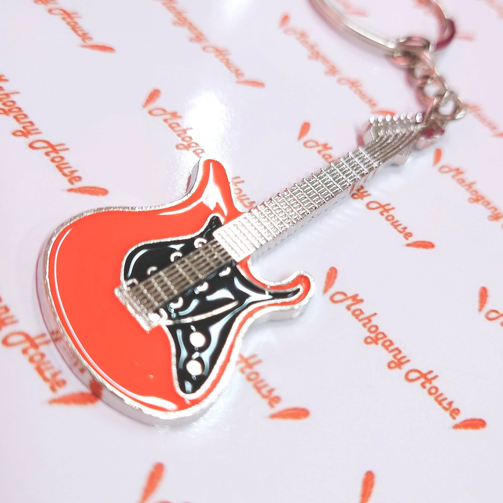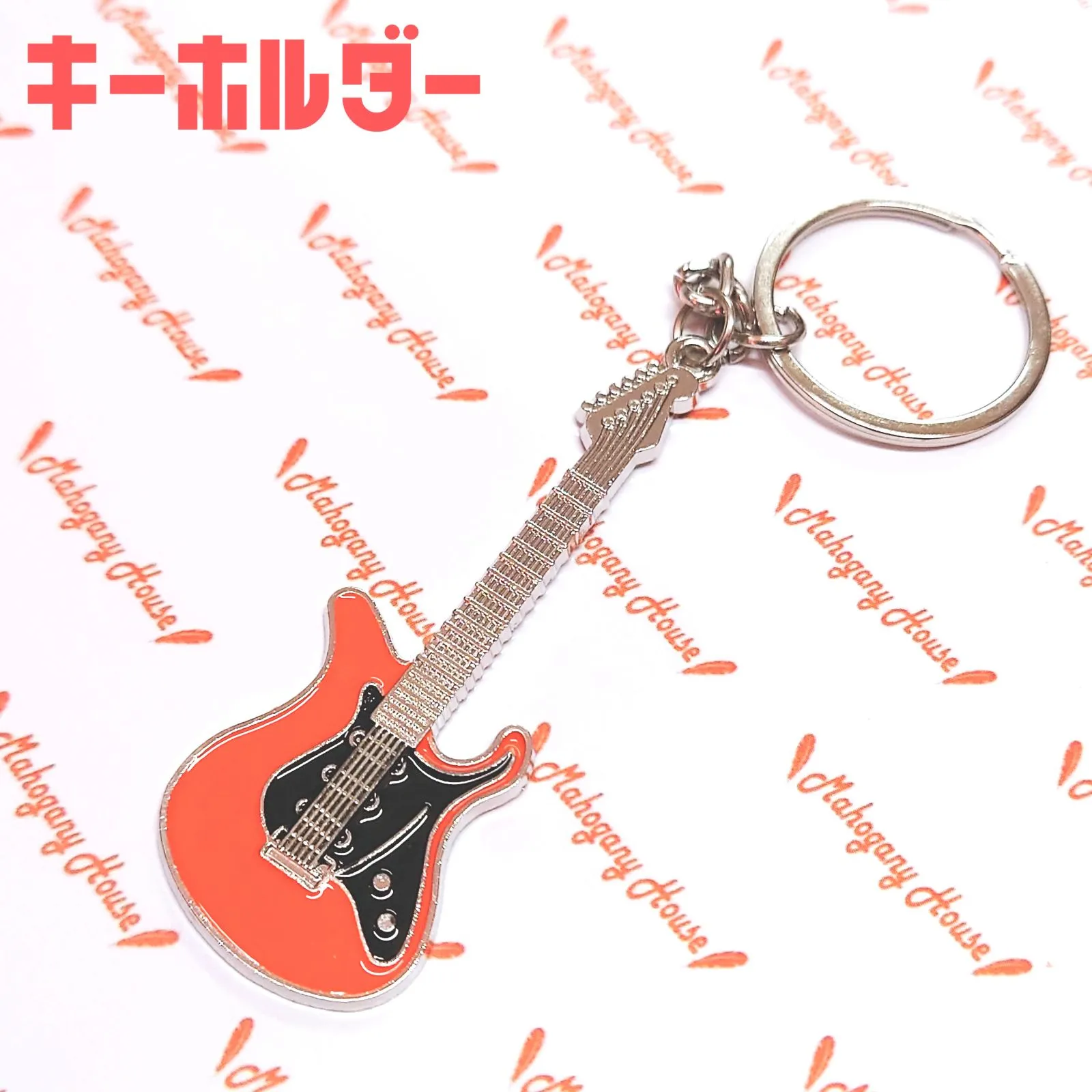 ギターモチーフ 金属製 エナメル キーホルダー キーリング オレンジ 橙
