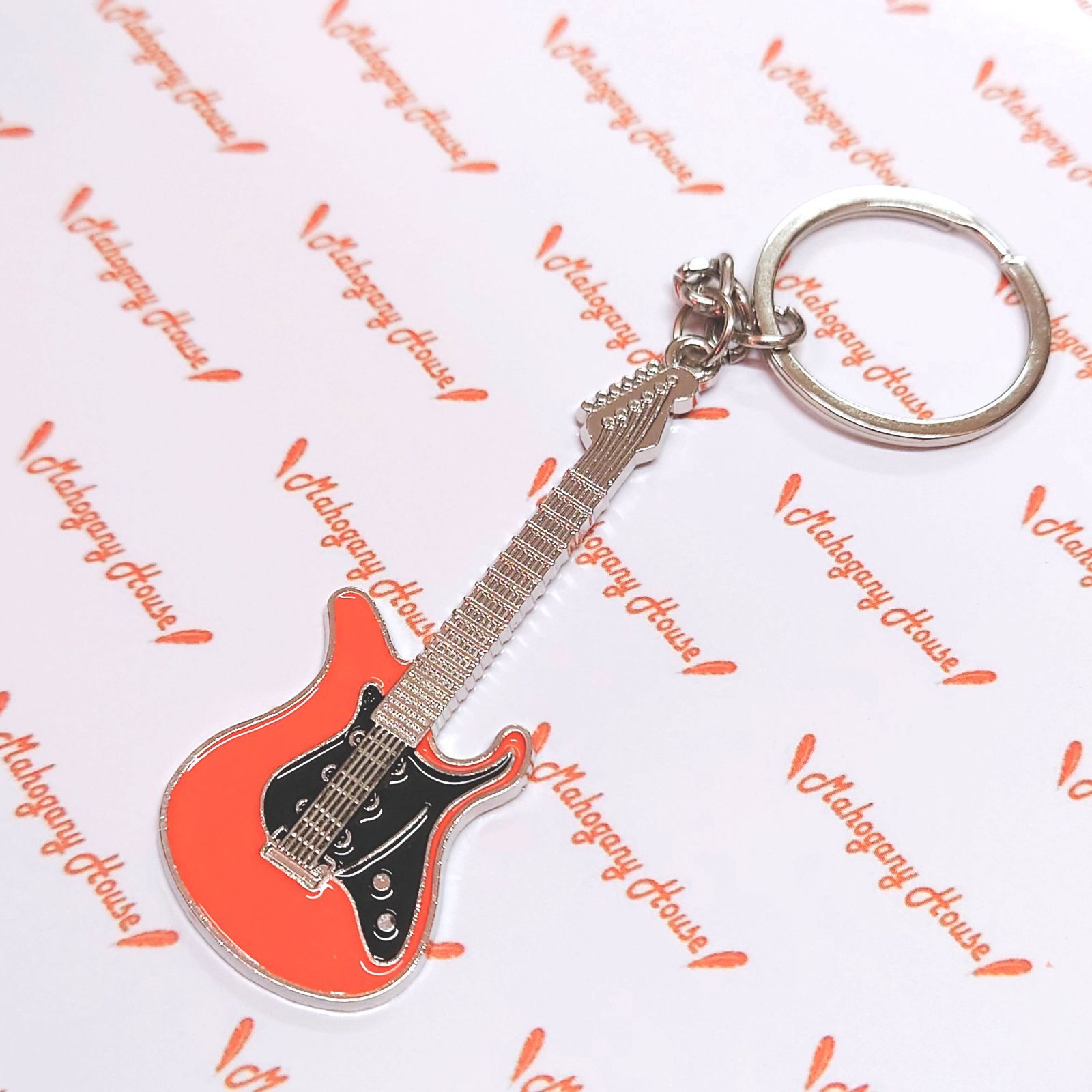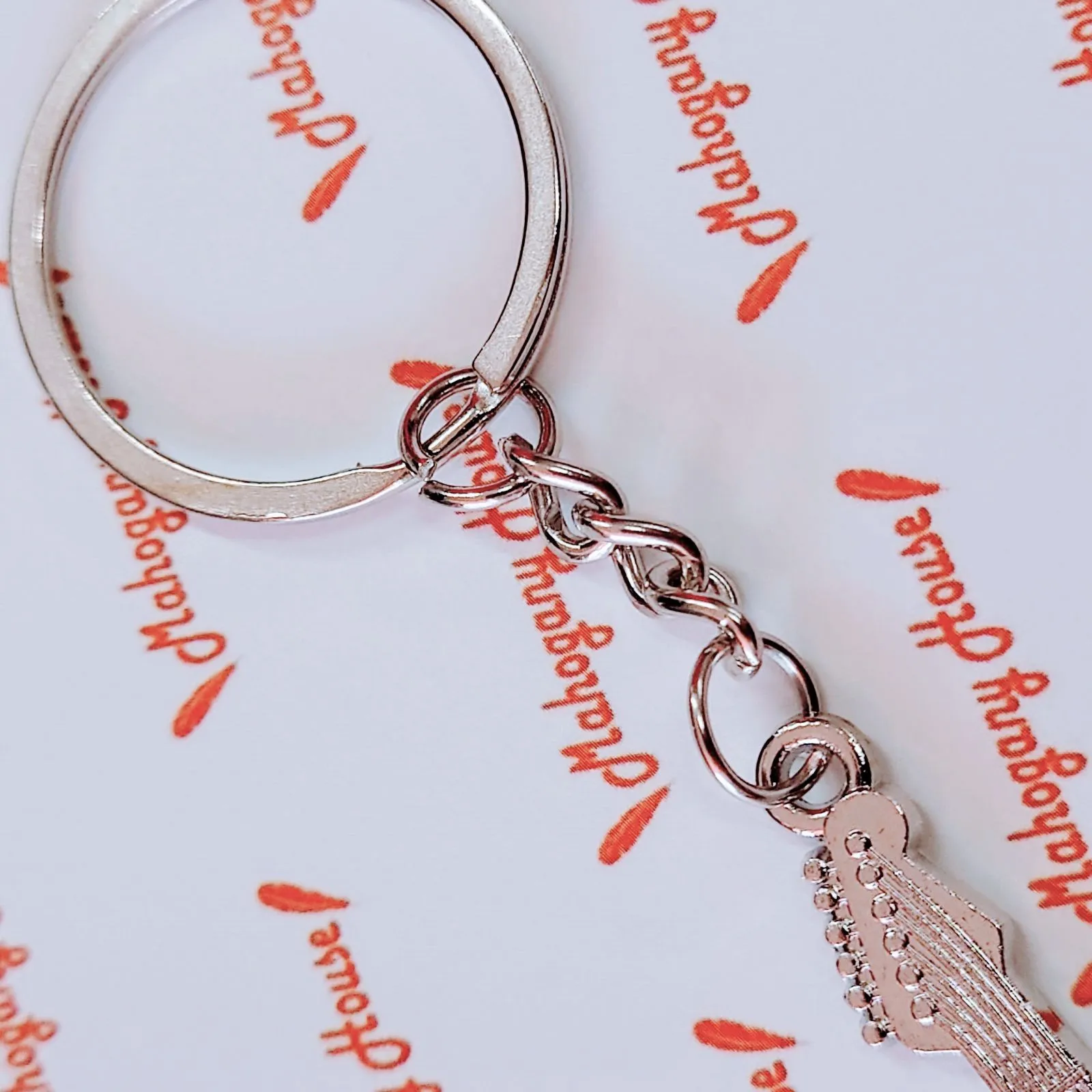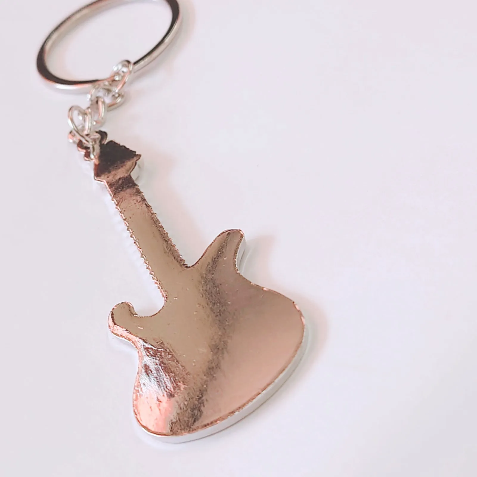ギターモチーフ 金属製 エナメル キーホルダー キーリング オレンジ 橙