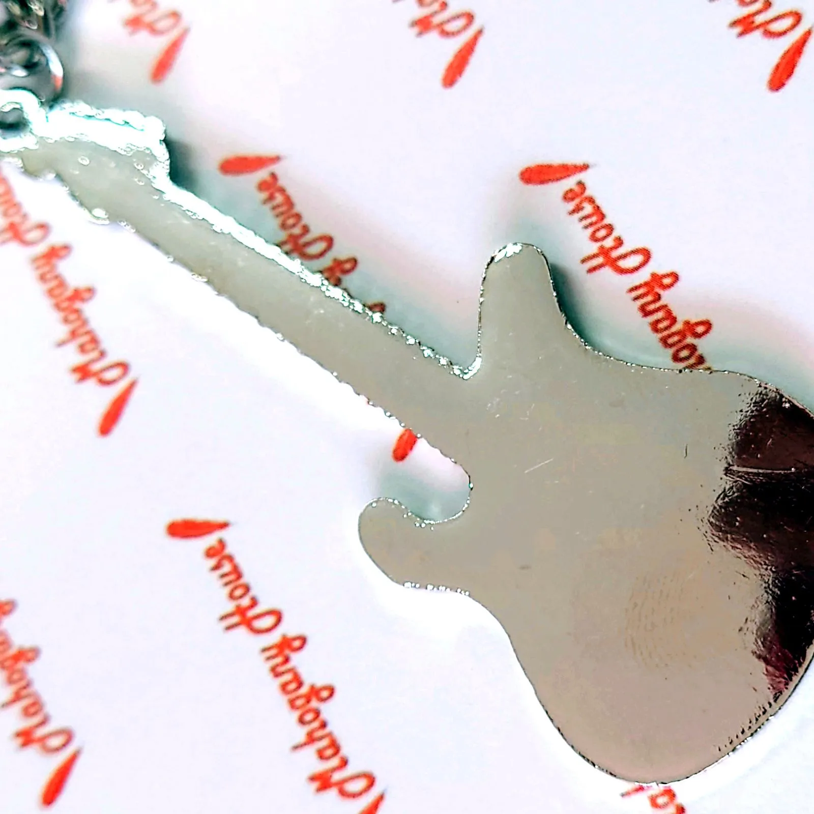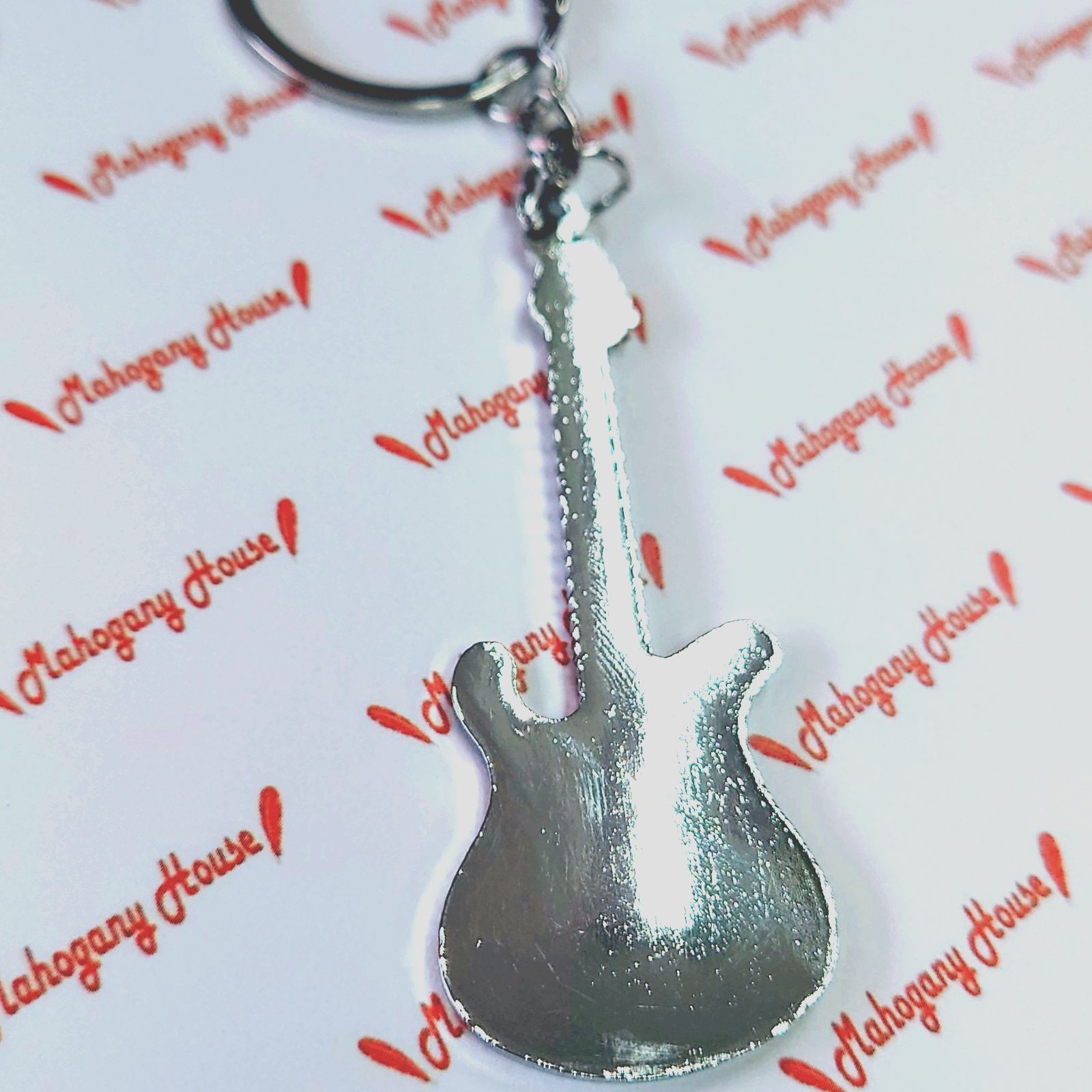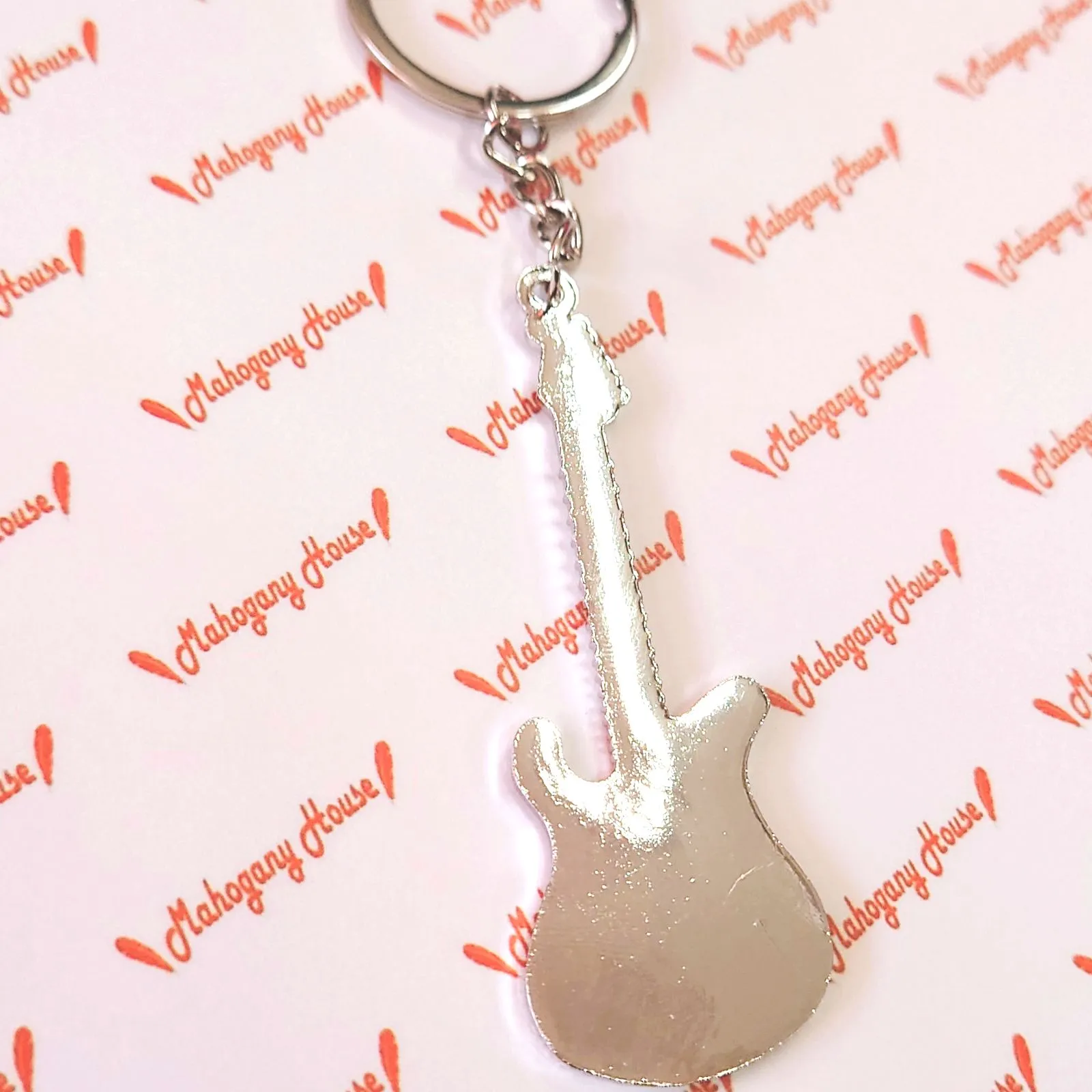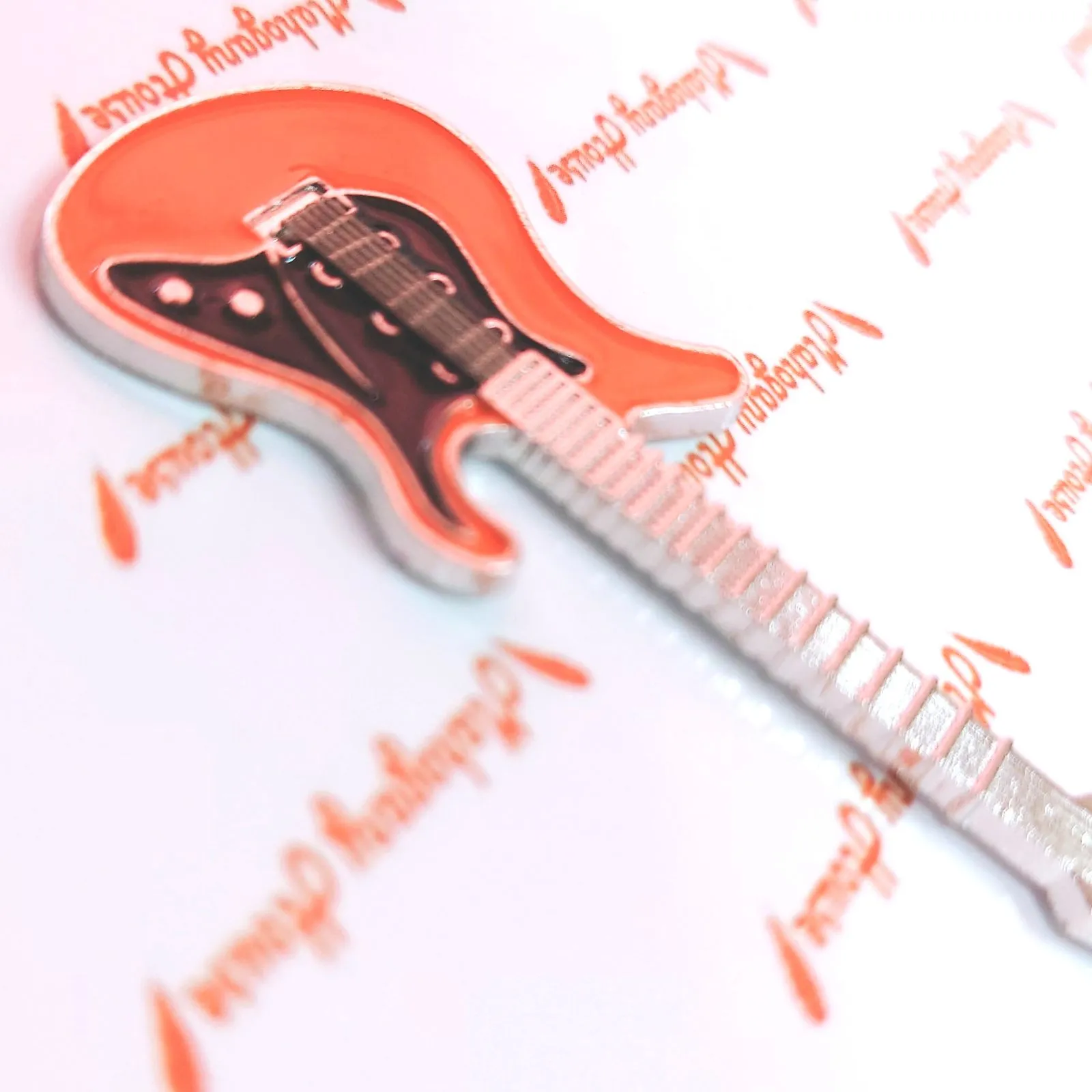 ギターモチーフ 金属製 エナメル キーホルダー キーリング オレンジ 橙