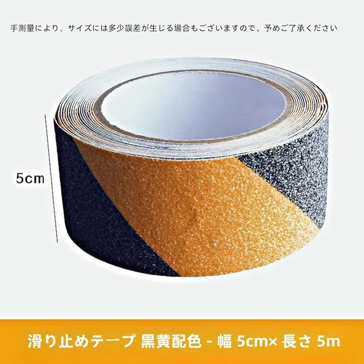 「階段 滑り止め テープの仕様」このすべり止めシートのサイズは、幅50mm、長さ5m、厚さ0.7mmです。