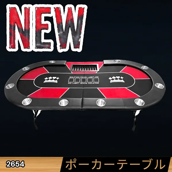 #2654 ポーカー テーブル レッド 折りたたみ 10人対応 家庭用 業務用 最大500枚チップラック付き ドリンクホルダー付き カジノ トランプ 高級 ※一部地域離島別途配送料有