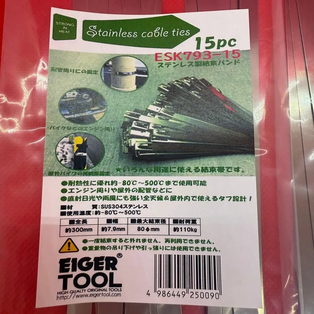 ステンレス製結束バンド 2点セット ESK793-15 ケーブルタイ 耐熱 固定