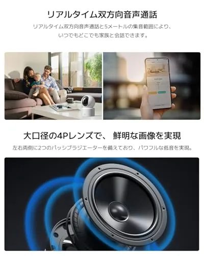 【双方向音声通話】リアルタイム双方向音声通話と5メートルの集音範囲により、いつでもどこでも家族と会話できます。大型スピーカーとインテリジェントなノイズリダクション機能を備えたマイクにより、大音量のクリアな音声で離れていても家族と会話ができます。
