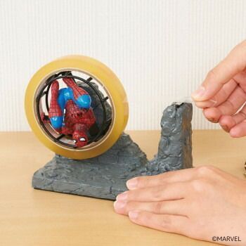 まるで映画のワンシーンのようなスパイダーマンのテープ台です