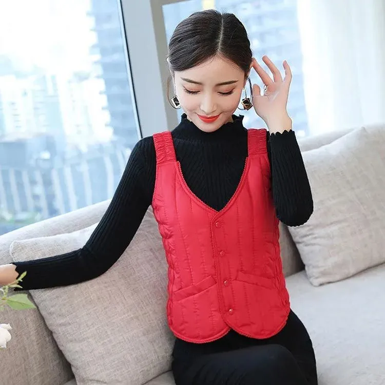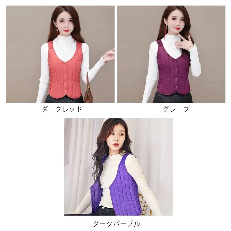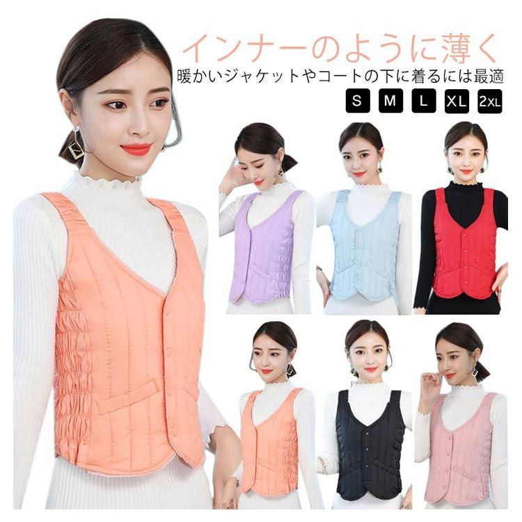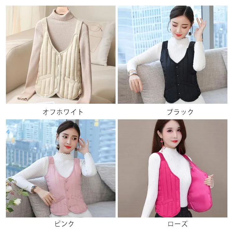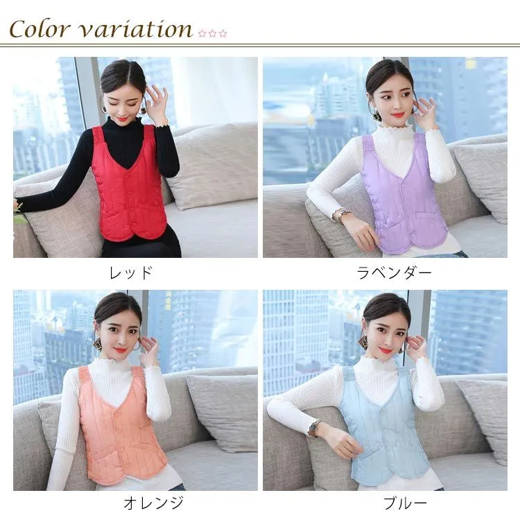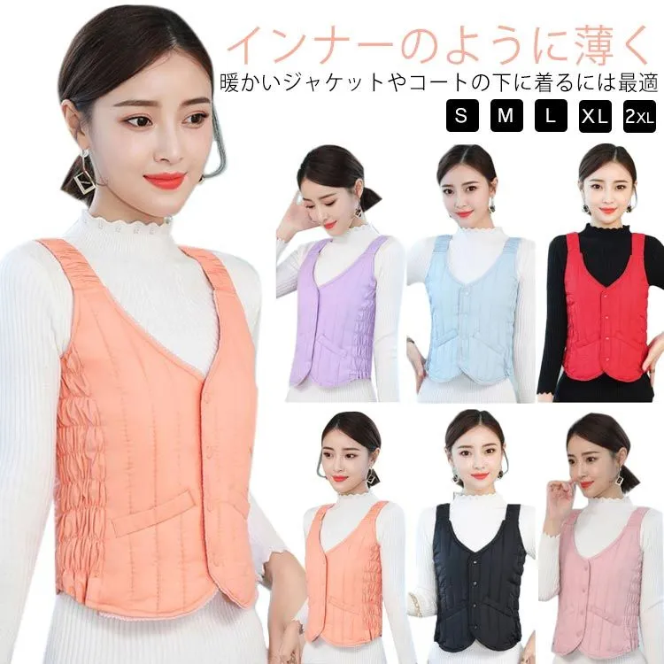 ダウンベスト レディース Uネック ウルトラライト インナーダウンベスト ダウンジャケット 中綿 軽量 薄い 暖かい 防風 保温 防寒 春秋冬 婦人 おしゃれ 細身 スリム インナー ベスト インナー#song2255