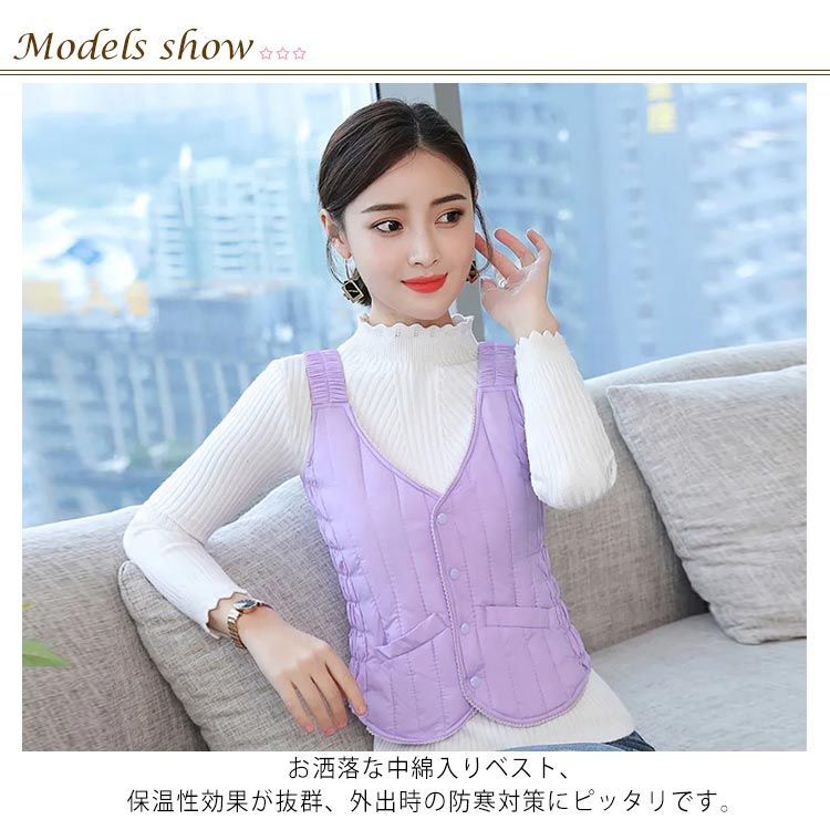 お洒落な中綿入りベスト、保温性効果が抜群、外出時の防寒対策にピッタリです。