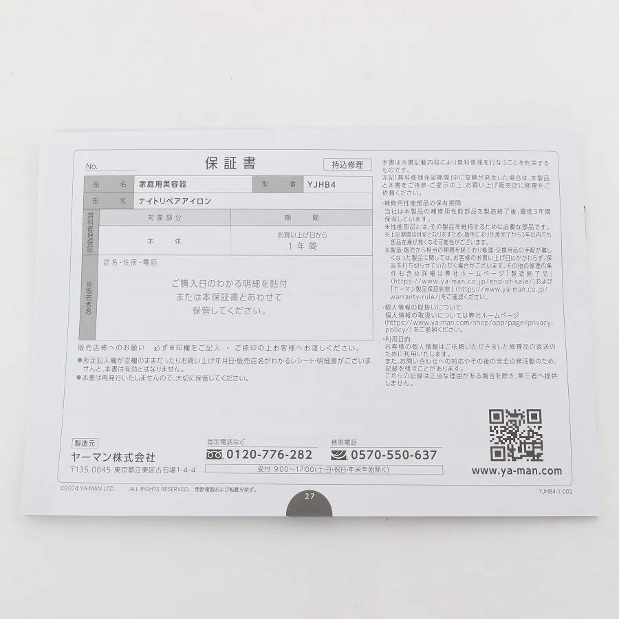 【新品】ヤーマン ナイトリペアアイロン YJHB4L ネイビー 超音波トリートメント ヘアアイロン YA-MAN 本体