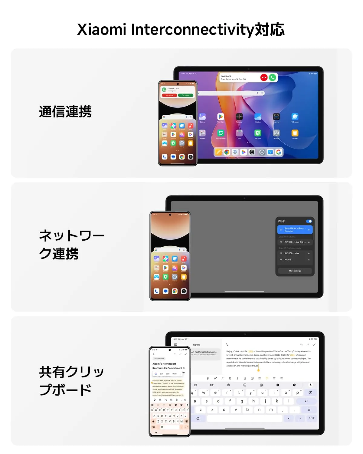 【11インチ2.5K高精細ディスプレイ】Redmi Pad 2は、11インチの2.5K高精細ディスプレイを搭載し、美しい映像表現を実現します。10億7000万色の色彩表現に対応しており、鮮やかで豊かな色合いと繊細なディテールでコンテンツを映し出します。臨場感あふれるエンターテインメントから日常使用まで幅広く活躍します。