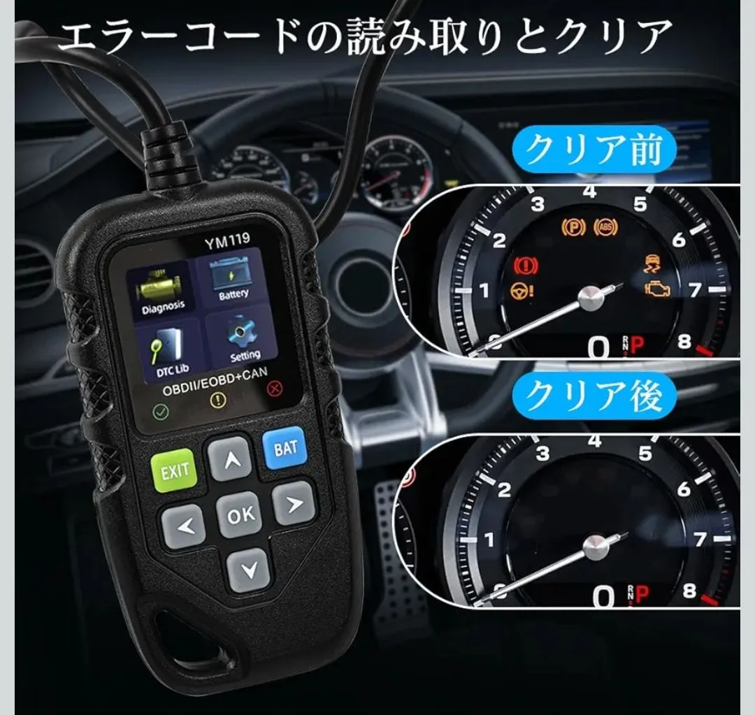 DTC故障信号灯:車両に故障コードがあるかどうかをすぐに表示できるDTC故障信号灯が付いています。診断結果は緑(故障無し)、黄色(一時的な故障コード)、赤(対応必要な故障コード)三色で表示されます。