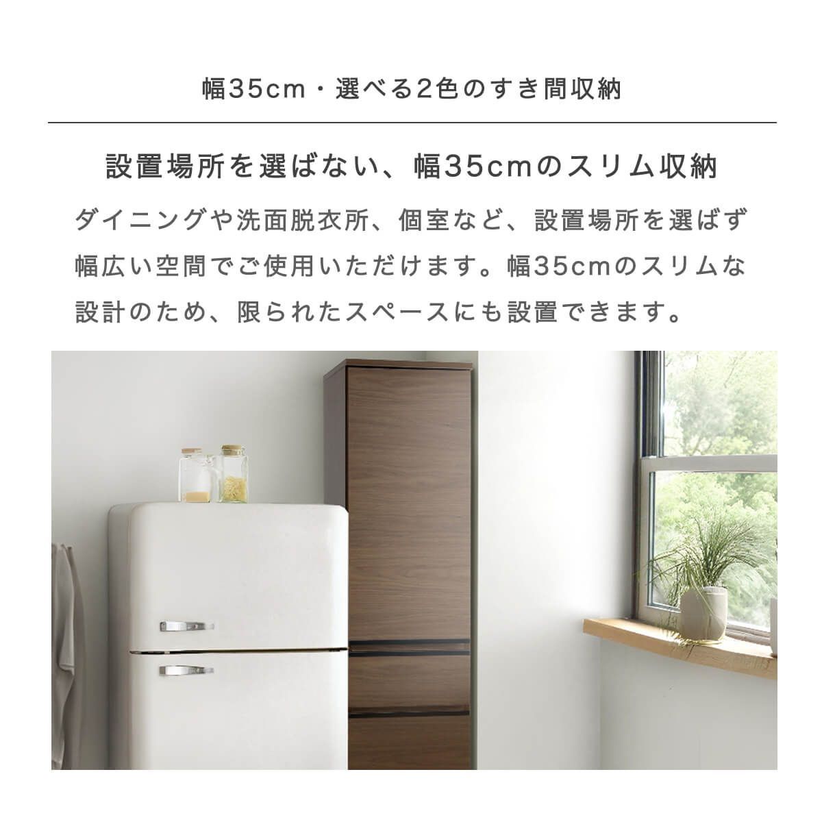 【大型商品】となります。 ※チケット購入の際は、地域がございますので、ご注意ください。 ※※※※※※※※※※※※※※※※※※※※※※※ 設置場所を選ばない幅35cmのスリム収納 ────────── 商品名:ビーン35すき間収納 ────────── カ ラ ー:[ ホワイト][ ブラウン](全2色) 素 材:WH:艶ありポリ板・BR:強化紙 生 産 地:日本 サ イ ズ:348mm(幅)×440mm(奥行)×1800mm(高さ) 梱包サイズ:730mm(幅)×460mm(奥行)×920mm(高さ) ────────── 仕様 ────────── ────────── 備考 ────────── 組立品(重ね:作業時間約20分)