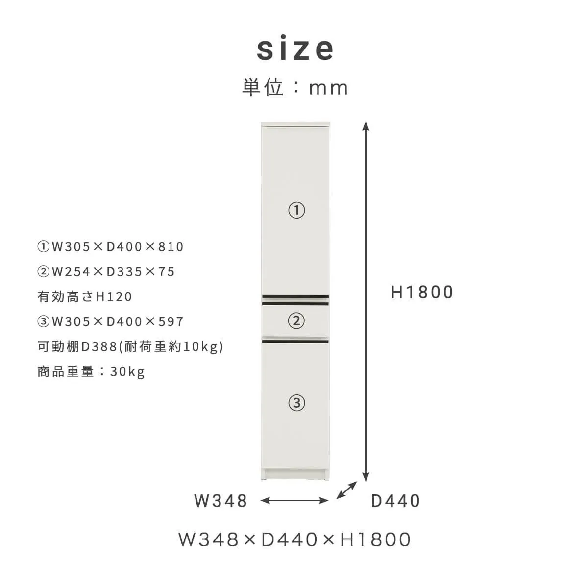 すき間収納 幅30cm スリム収納 奥行44cm 高さ180cm 食器棚 ランドリー収納 リビング収納 隙間収納 扉 引出 幅34cm 「才:12」