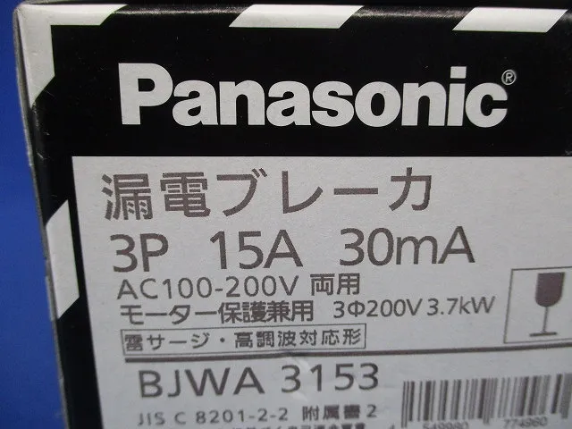 漏電ブレーカ 3P15A30mA AC100-200V両用 BJWA3153