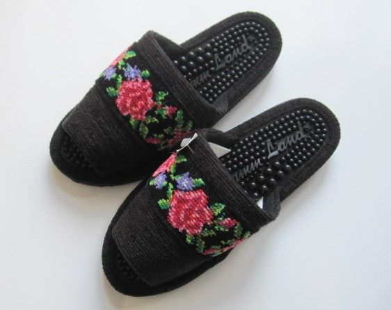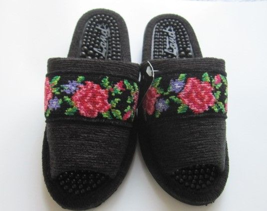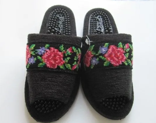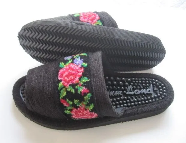 健康スリッパ:ヘルスシェニール女性用 ブラックM