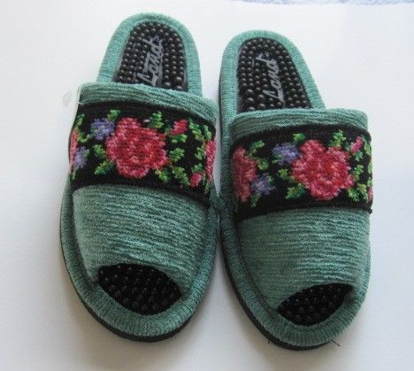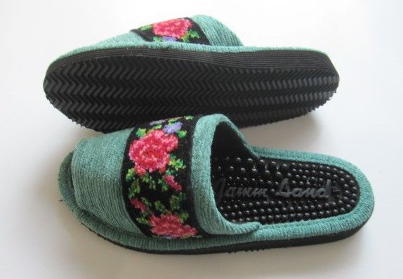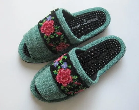 健康スリッパ:ヘルスシェニール女性用 グリーンM