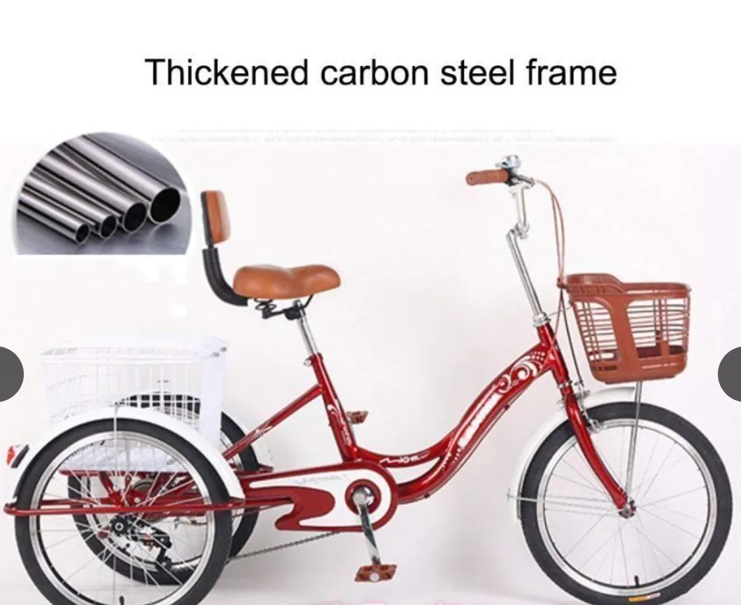 大好評☆大人のための三輪車 1段変速 自転車 シングルスピード 20インチ 3輪トライク バスケット付き 三輪クルーザーバイク にとって 高齢者 女性 男性 にとって ショッ