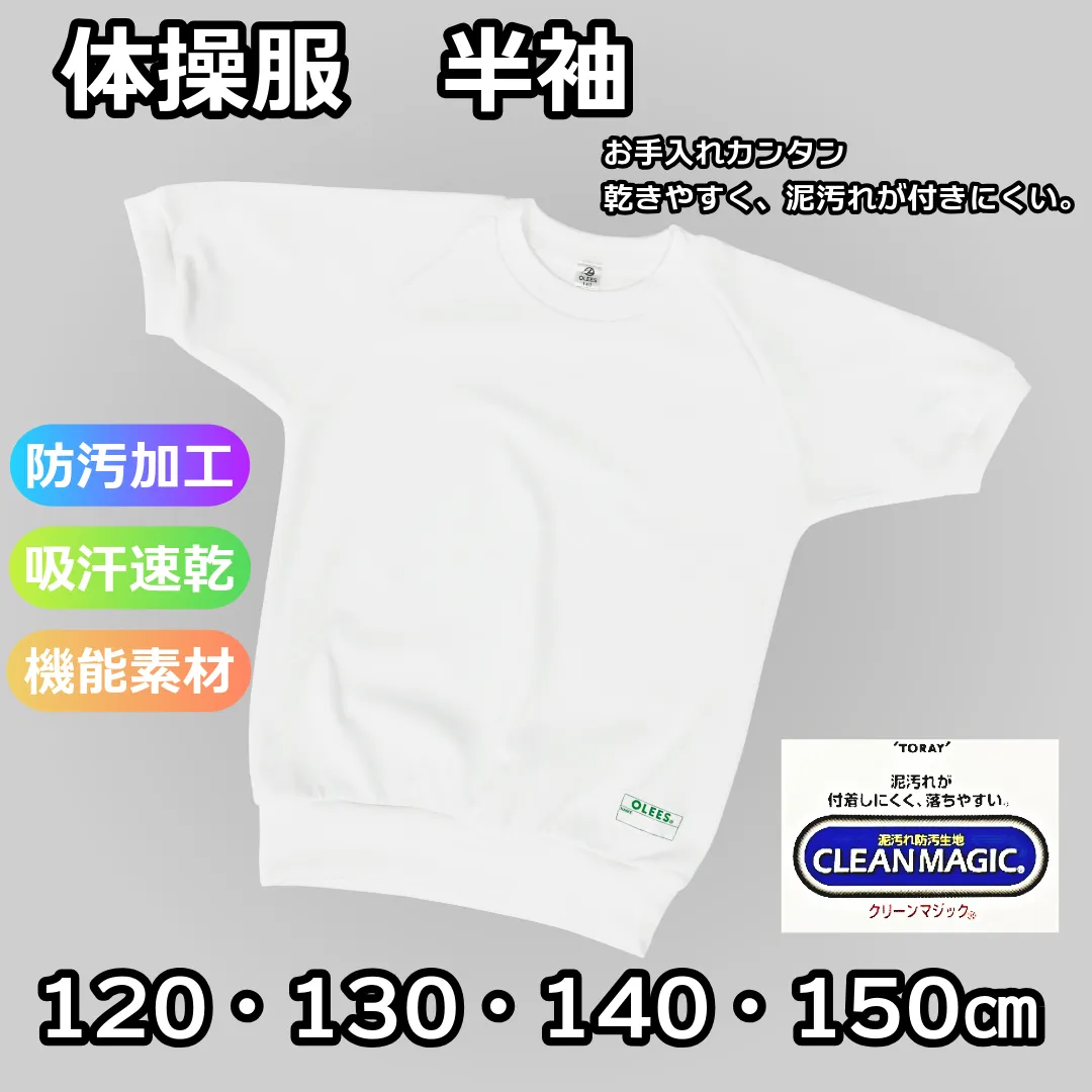 【新品・通常在庫品】OLEES 体操服 半袖 ホワイト 防汚加工(東レ:クリーンマジック生地使用) 吸汗速乾 120/130/140/150㎝ 日本製 小学生サイズ【送料込み】