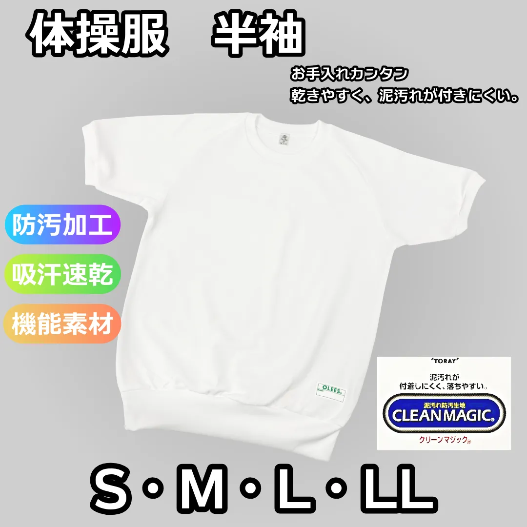 【新品・通常在庫品】OLEES 体操服 半袖 ホワイト 防汚加工(東レ:クリーンマジック生地使用) 吸汗速乾 S/M/L/LL 日本製 小学生高学年・大人サイズ【送料込み】
