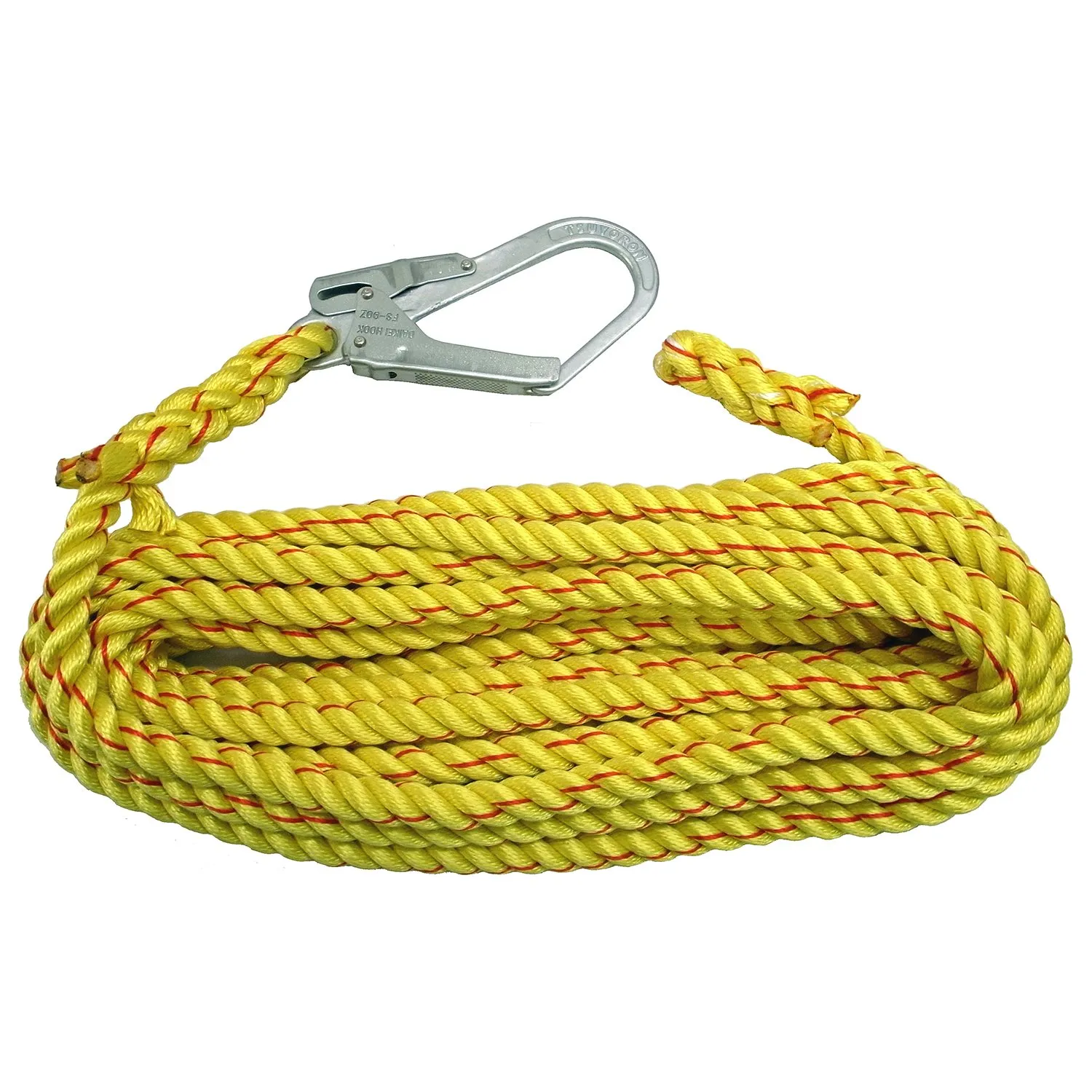 ロープ材質:ニューテトロン16mmΦ(3ツ打ち)、黄色赤線入り(中芯部分:PPダンライン白)