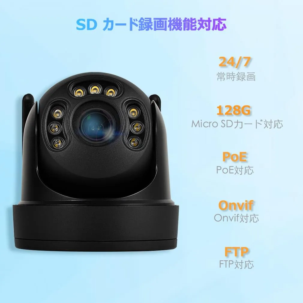 【4K画質・光学5倍ズーム・カラー暗視撮影】KPACOT 防犯カメラ 屋外 ワイヤレス/wifi 800万画素 監視カメラ POEカメラ 自動追跡 ネットワークカメラ 双方向通話 人物/ペット/車両検知 360° ptz機能 遠隔操作 24時間録画 Mirco SDカード対応 スマホ連動 家族共有 ios android windows対応 ONVIF NVR対応 色: ブラック_サイズ: 8M-5X