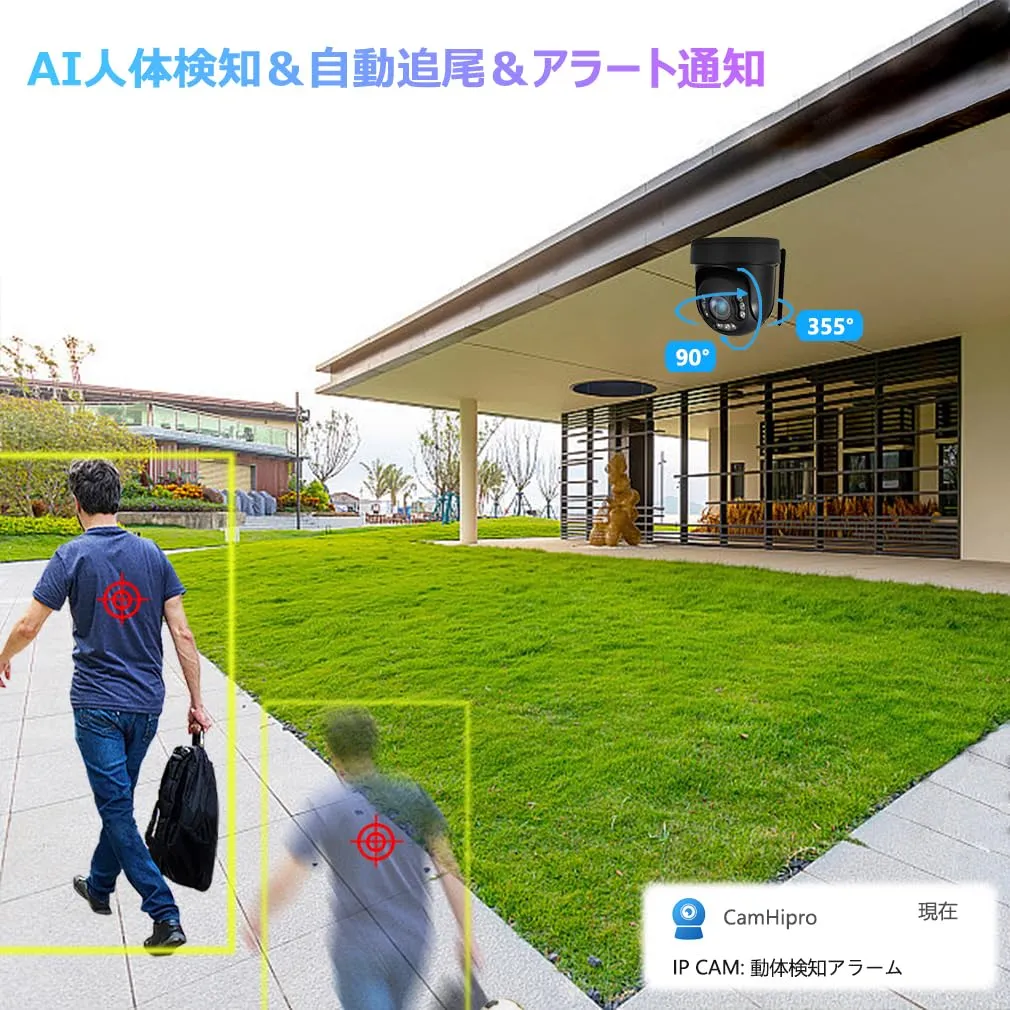 【AI検知ー人・ペット・車両検知&パンチルト機能&自動追尾】①現在このPOEカメラは多種の検査機能を搭載:動体検知、人体検知、人ペット検知、人車検知。AI人体検知モードでは人にしか反応しません。誤警報を有効に減らせます。人車検知モードでは,人物と車両を同時に検知できる。②PTZ搭載、左右355°垂直90°可動広範囲視野、360°全方位の視線、防犯死角なしの監視カメラ、より安全な見守り体験をお届けします。③監視範囲内に、人体の形を自動的にフォローして(モバイルトラッキングオンの状態)、動き状況が把握できます。