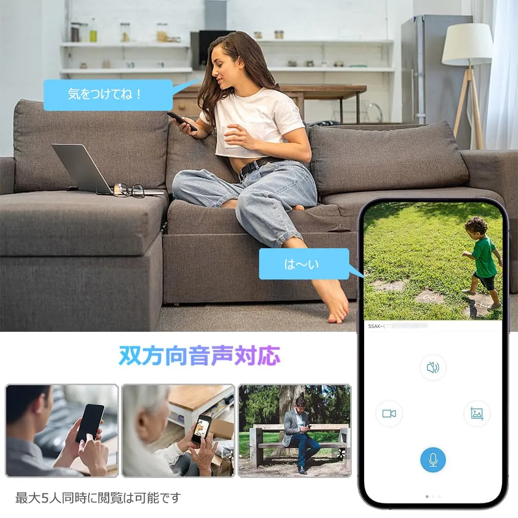 【双方向音声&警報通知】①双方向音声機能が付きます。携帯、NVR、パソコンを通じてカメラの双方向対話を実現することができます。ただし、NVRとパソコン側には別途マイクを設置する必要があります。②AI検知/動体検知が誘発されると、カラー画像を取り次第すぐ音声サイレンアラーム通知を発信する。侵入者を威嚇して、犯罪を未然に防ぐ。スナップショッはFTPアップロードを対応可能し、自動的に写真や録画をアップロードすることを設定できます。何か事故や事件があった時に、証拠や状況の把握に大きな手がかりとなります。