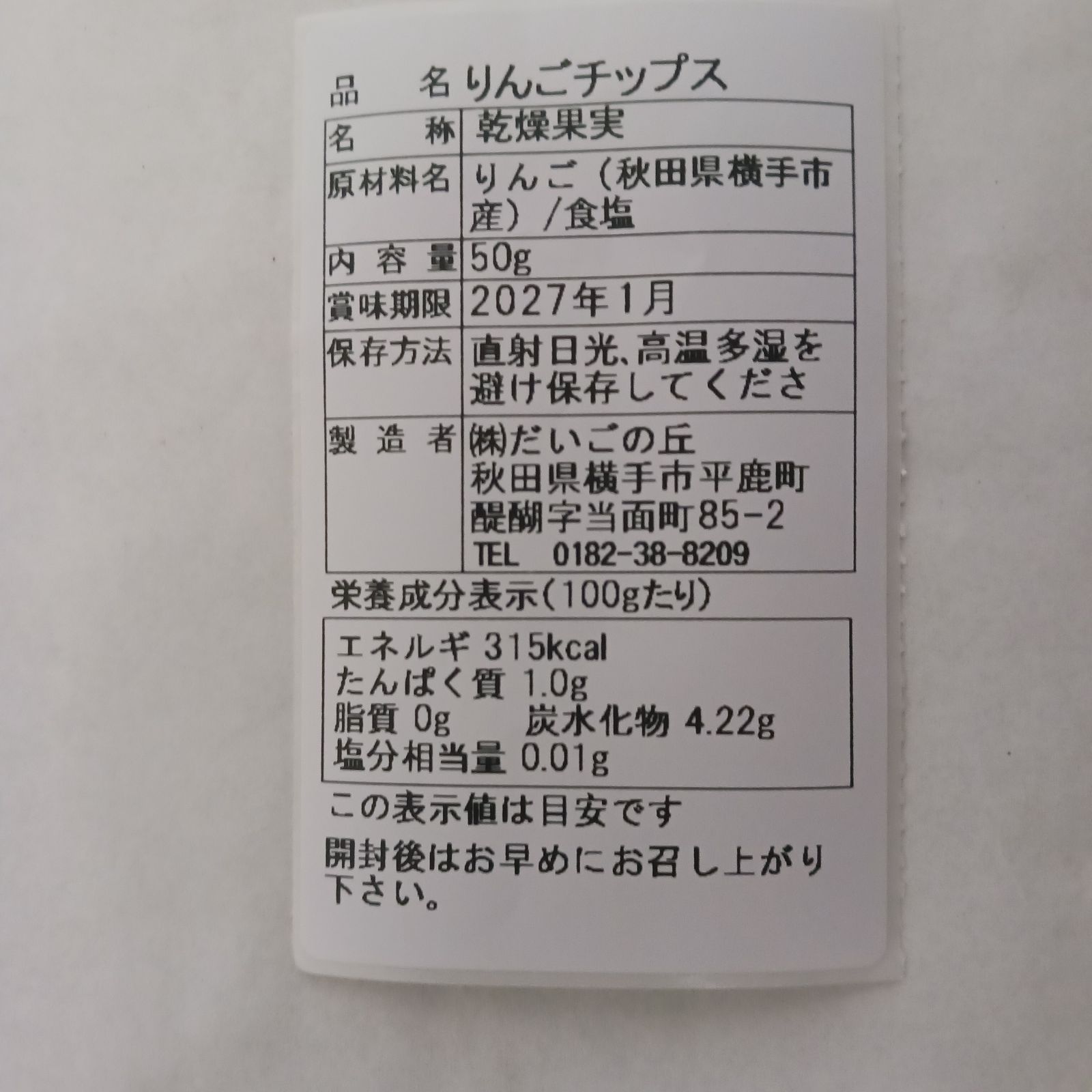 【砂糖不使用・完全無添加】秋田県横手市産 ドライりんご(りんごチップス)50g 訳あり 国産 品種ミックス