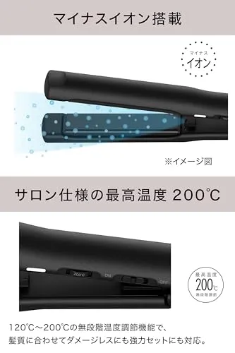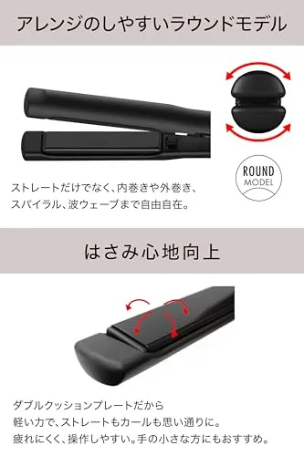 【ストレートもカールも作れるヘアアイロン】 モッズヘア「マイナスイオン ストレートアイロン」は、本来の「髪をまっすぐにする」機能に加えて、カールやウェーブも簡単に作れる設計になっています。ストレートヘアからトレンドのゆるふわカールまで、気分に合わせた多様なスタイルを楽しめるのがこのヘアアイロンの魅力です。このストレートヘアアイロンなら複数のヘアセットアイテムを揃える必要がなく、収納にも便利です。