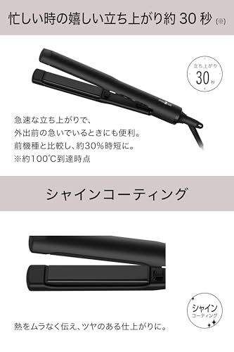 【スピーディーな立ち上がりで便利】 モッズヘアの従来のヘアアイロンと比較して、立ち上がり時間を約30%短縮。ヘアーアイロンの電源を入れてから約30秒で100度に到達します。家を出る直前でもサッと髪を整えることができ、時間を有効に使えます。急いでいる時でもヘアアイロンが温まるのを待つストレスを感じることなく、スムーズにストレートヘアに整えられます。