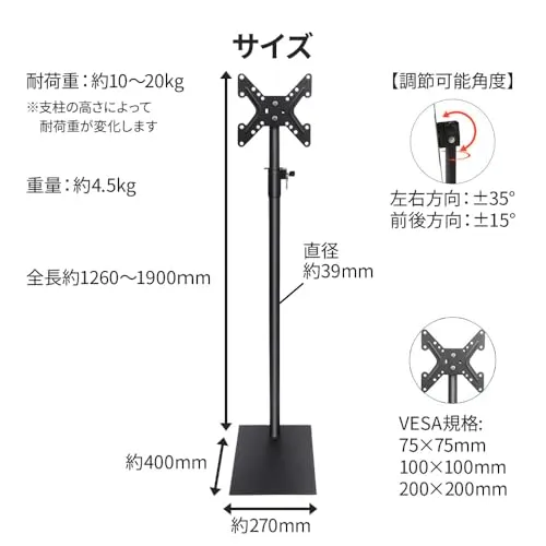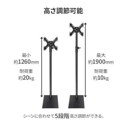 【送料無料】iimono117 テレビスタンド 19?43インチ対応 ハイタイプ 壁寄せ (高さ 126?190?) VESA規格対応 高さ 角度調整可能 耐荷重35KG 自立 TVスタンド 黒 家用 学校 会社 病院 ビジネス展示用 (1台)