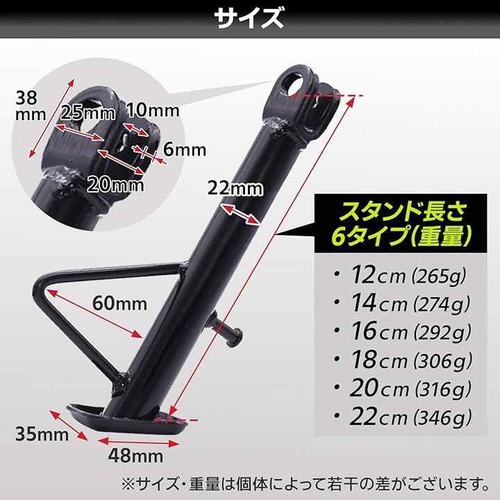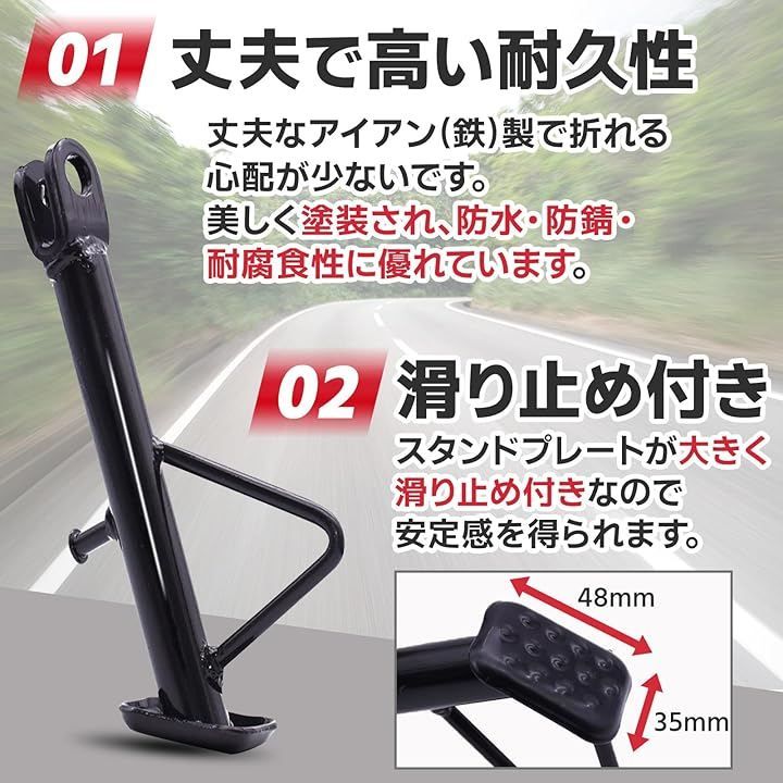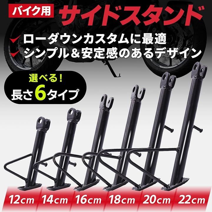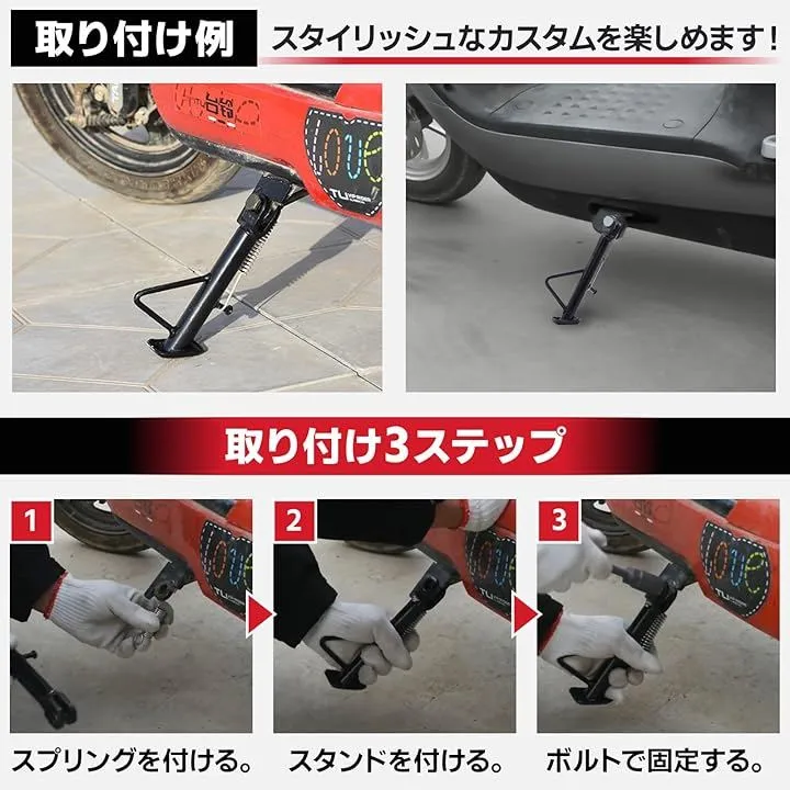 UB-Lab. バイク 用 サイド スタンド 原付 アシスト フック キック 転倒 防止 ボルト バネ (ブラック, 16cm)