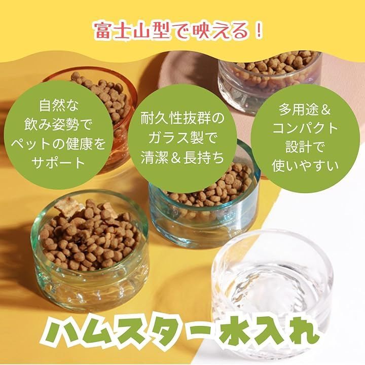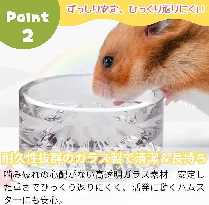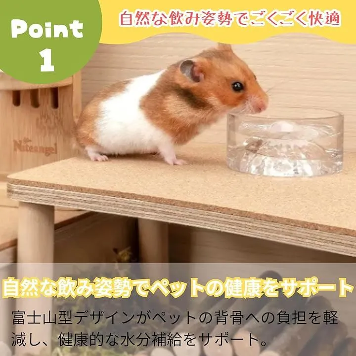 「自然な飲み姿勢でペットの健康をサポート」富士山型デザインが背骨への負担を軽減し、ハムスターやシリアンハムスター、ジャービルなどの小型ペットが快適に水を飲めます。
