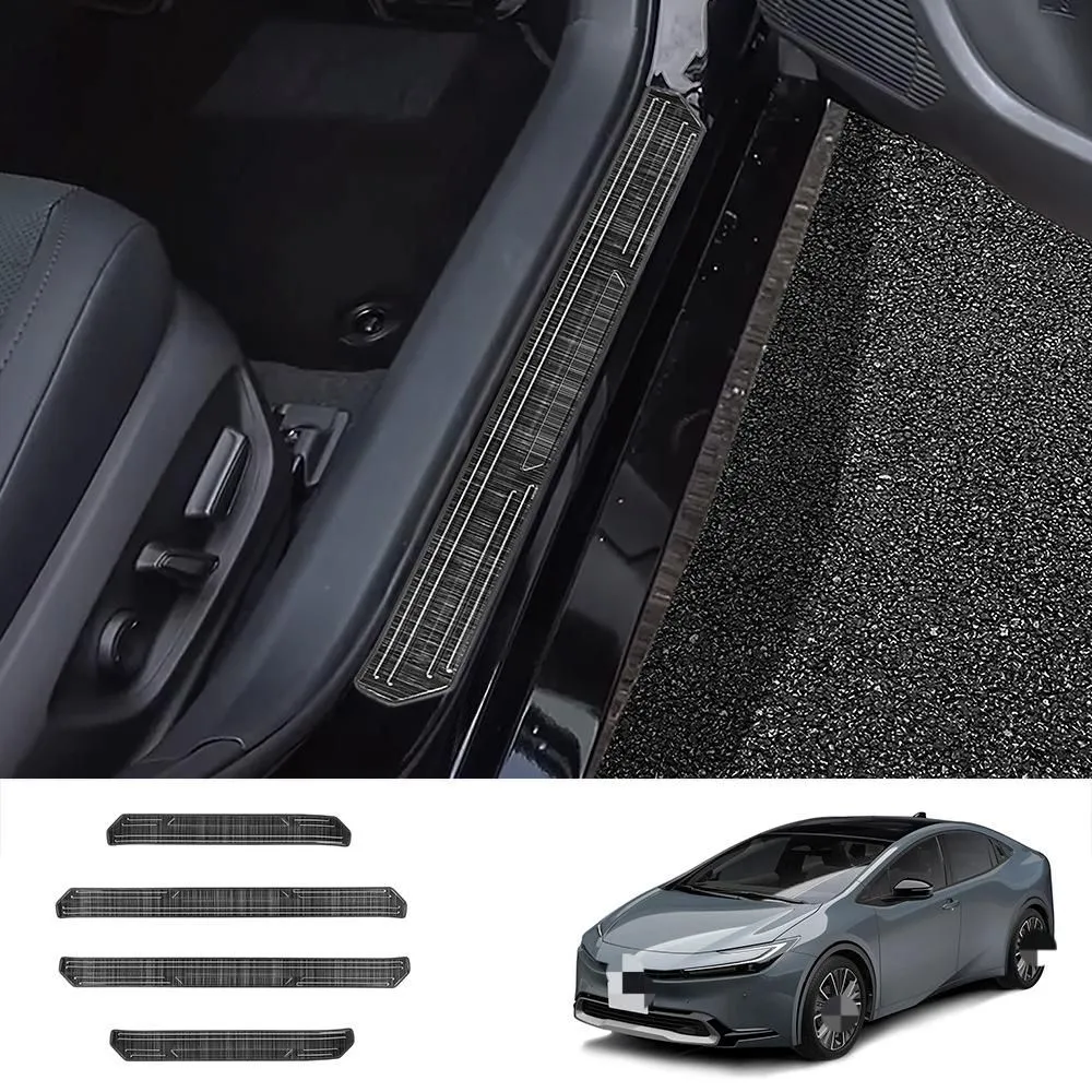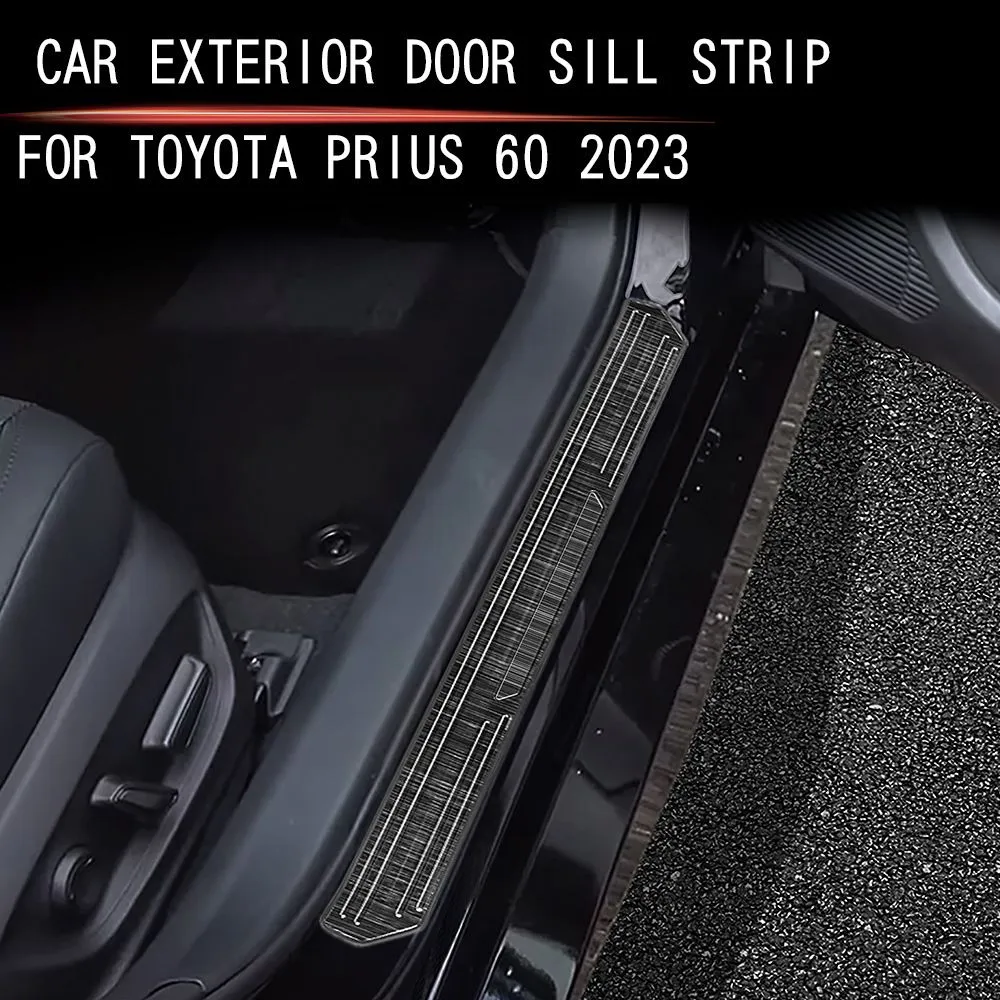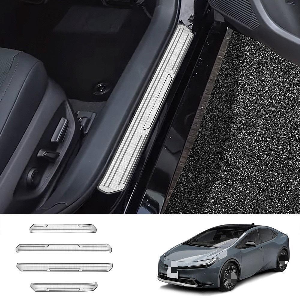2023年式トヨタプリウス60系専用の外付けドアステップバーです。高品質なステンレス製で、シルバーまたはブラックのブラシ仕上げが施されており、車両の足元を引き締めるエレガントなアクセントとなります。全4点セットで、簡単に取り付けが可能です。