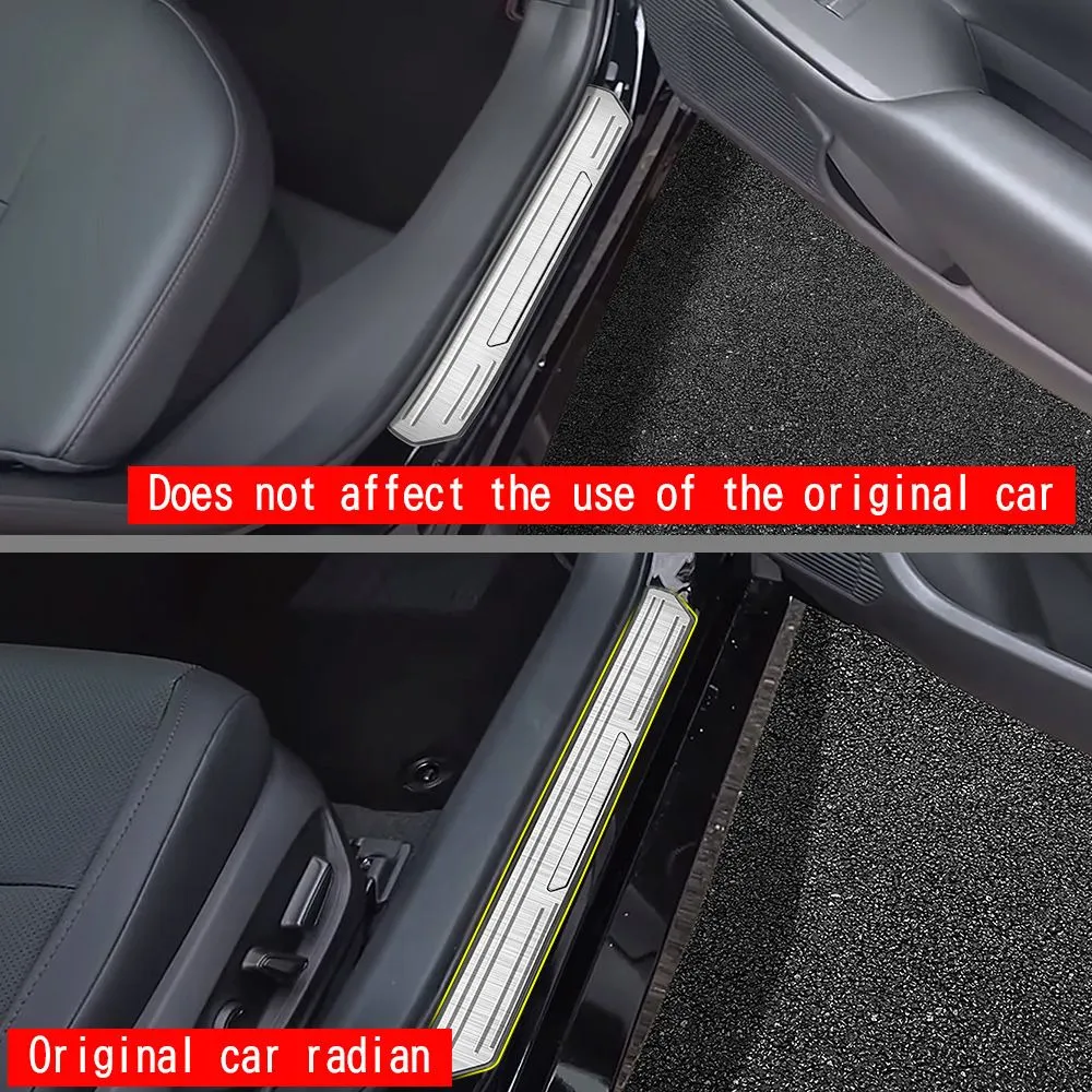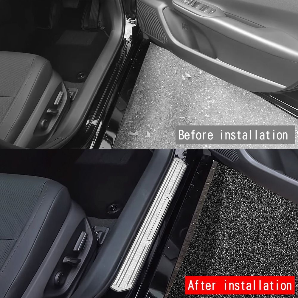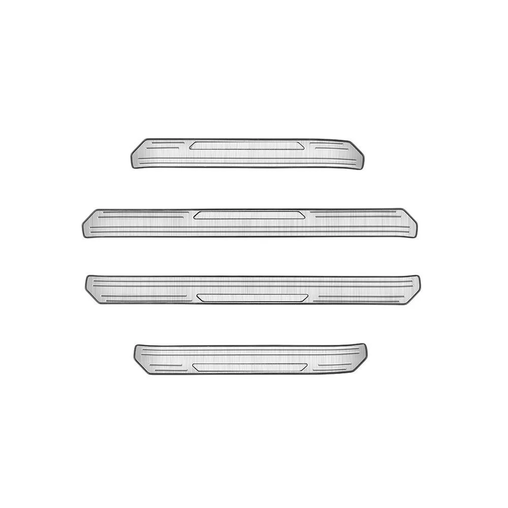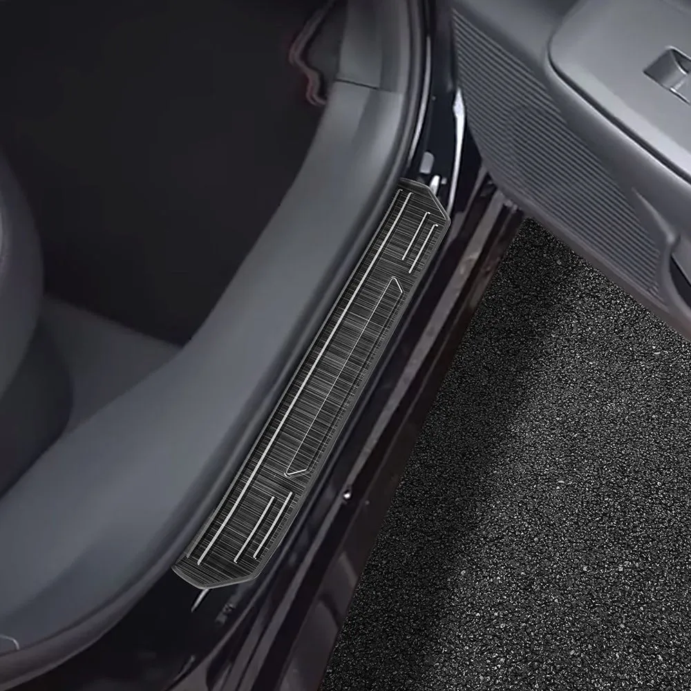 2023年式トヨタプリウス60系専用の外付けドアステップバーです。高品質なステンレス製で、シルバーまたはブラックのブラシ仕上げが施されており、車両の足元を引き締めるエレガントなアクセントとなります。全4点セットで、簡単に取り付けが可能です。