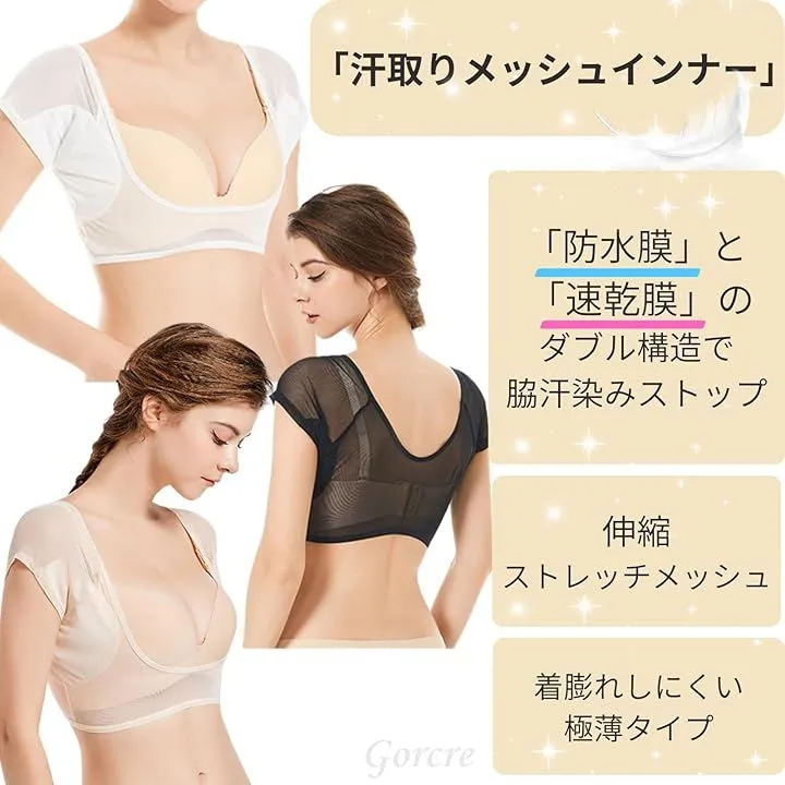 Gorcre 汗取り メッシュ インナー シャツ 脇汗 防水 パッド 付き レディース 快適 サラサラ 極薄 伸縮 吸水 抗菌 消臭 しみ 対策 (ホワイト, XL)